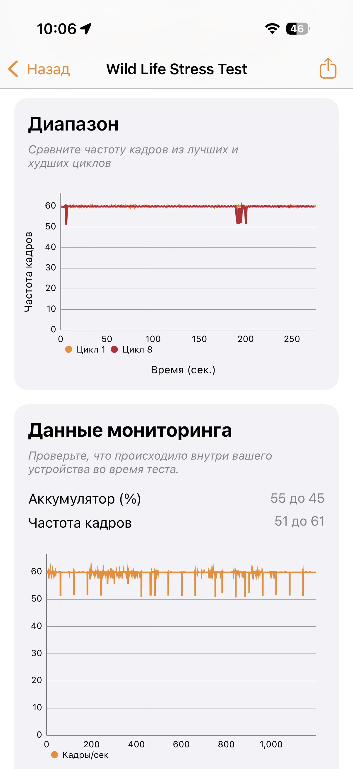 После установки режима HDR я выставил максимальную графику, перезапустил игру и провел еще один бой. Не было ни одного лага, да и глупо было бы ожидать. Но тут я понял фишку с алюминиевым корпусом. Теперь смартфон нагревается не точечно, а весь и корпус реально работает рассеивателем. Это определенно плюс, так как даже после столь длительных баталий 17 Pro не снизил яркость экрана, что косвенно говорит обо улучшении теплоотвода. Собственно, Apple также установила испарительную камеру, что тоже является новинкой. По этому пункту у меня определенно претензий нет.