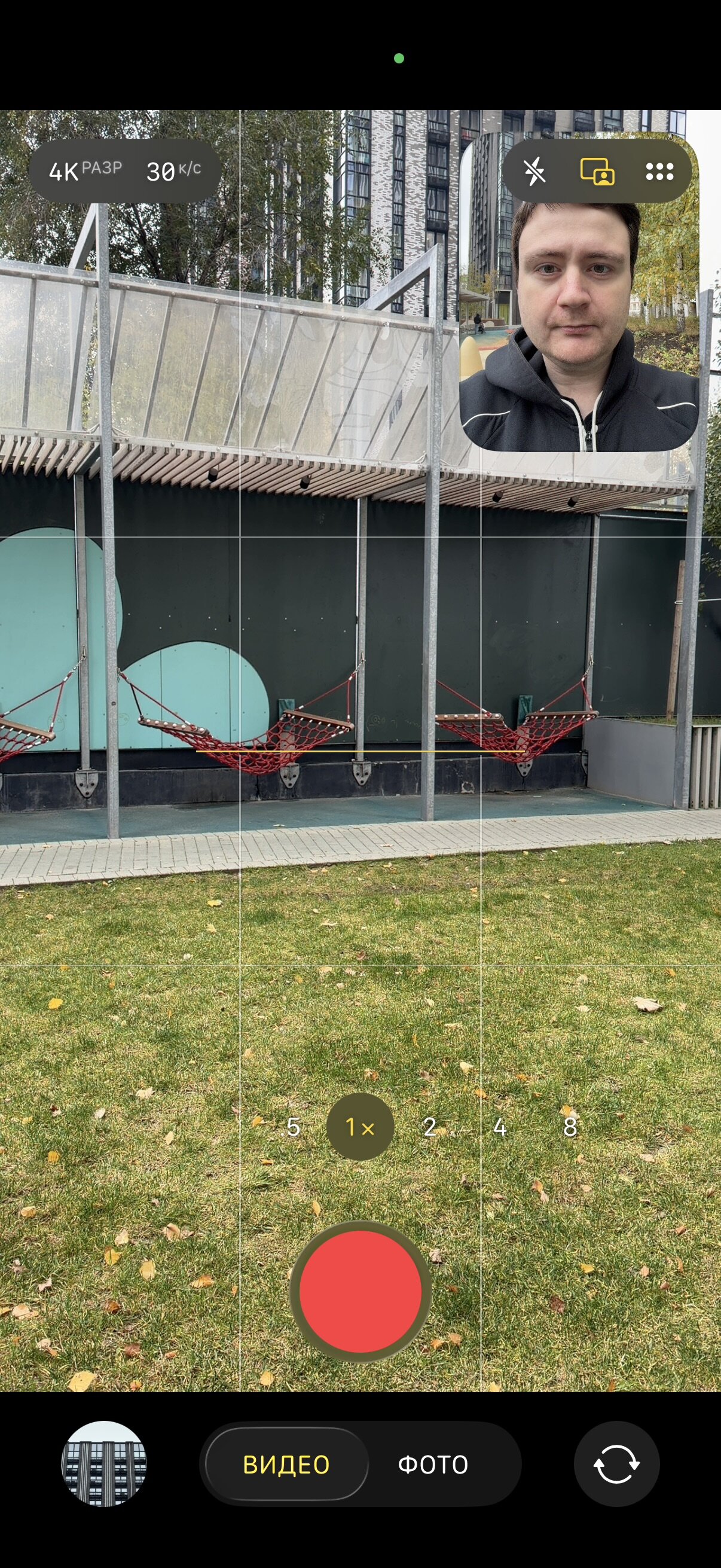 Немного изменились доступные режимы съемки, если раньше были доступны такие варианты: ×.5, ×1, ×2, ×5, то теперь у нас есть ×.5, 1×, ×2, ×4, ×8. Обращаю внимание, что режимы ×.5, ×1 и ×4 являются нативными, а вот ×2 и ×8 — кропом с 48 Мп до 12 Мп. Сама Apple почему-то называет каждый режим оптическим увеличением, но это не является правдой, так как оптика в смартфоне неподвижна, а кроп с матрицы он и есть кроп, даже если качественный. Также мне не нравится новый телевик тем, что он очень темный, а именно — f/2,8. Основная камера обладает апертурой f/1,78 и это очень большая разница: при переключении на телевик сразу видно затемнение картинки.