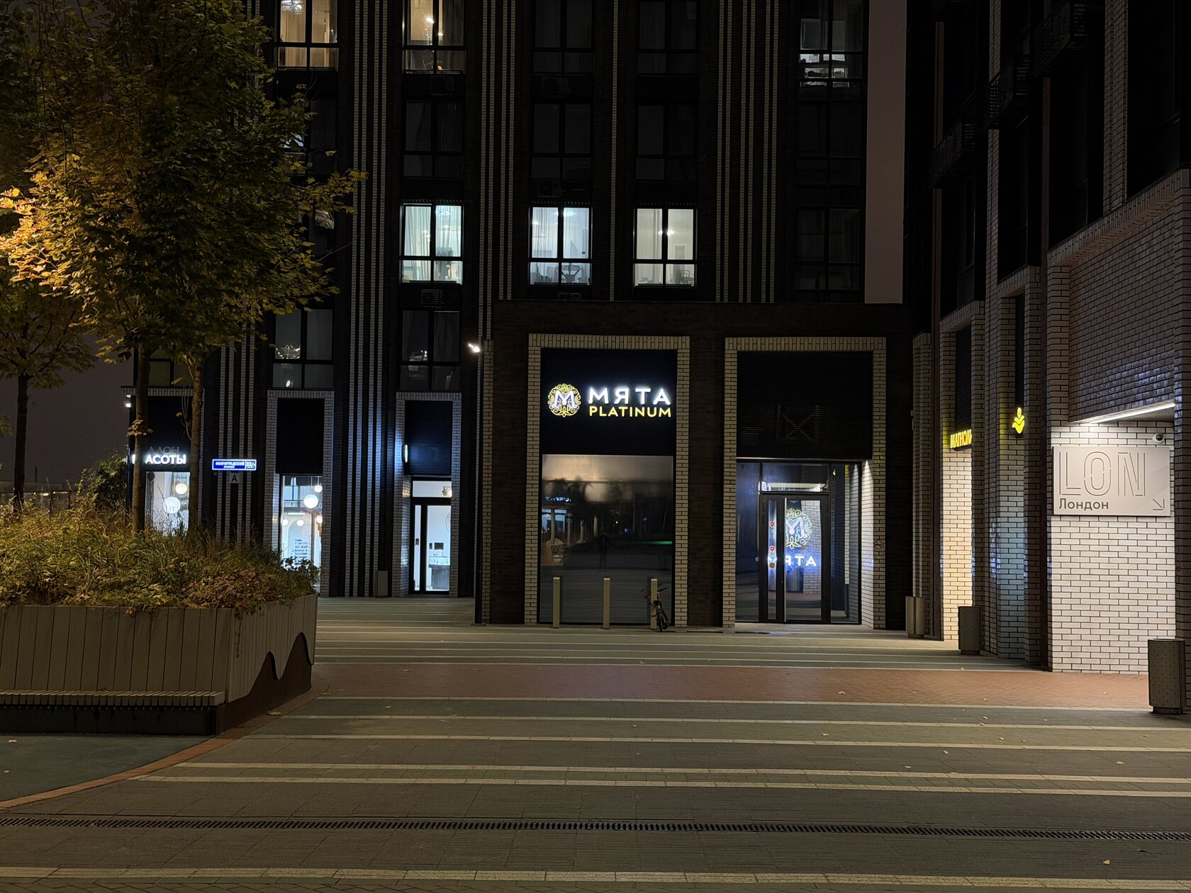 Далее будут такие же примеры, но уже ночных фото. Они не совсем ночные, так как в городе почти невозможно найти местность без мощного освещения, но я постарался уйти от прямого освещения. Снижение качества крайне невысокое, но в режиме ×8 ночью фоткать еще сложнее, так как повышается выдержка и изображение начинает «плавать» еще сильнее. Но качество во всех режимах реально хорошее.