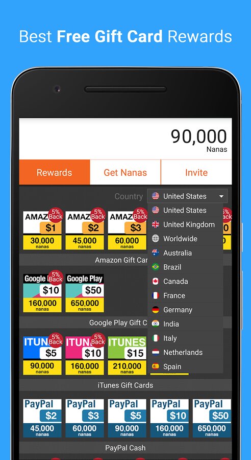 AppNana — хотите получить бесплатные подарочные карты Steam, iTunes, GooglePlay, Amazon, PayPal? Тогда это приложение для вас!