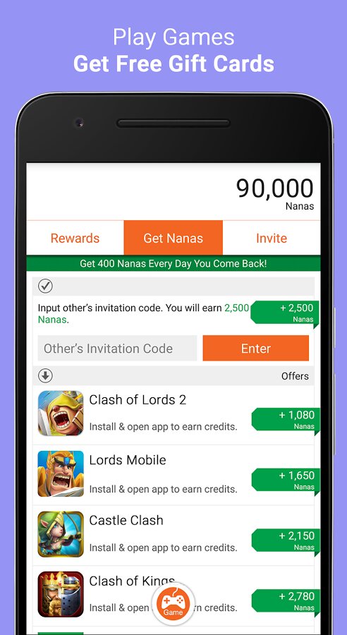 Как это работает? Легко. Сначала регистрируемся. Не волнуйтесь, проверено. Затем скачивая игры и заходя каждый день получаем баллы. А когда накопите 15000 нана сможете вводить коды. А потом обменяйте их на деньги во всем вышеперечисленном.