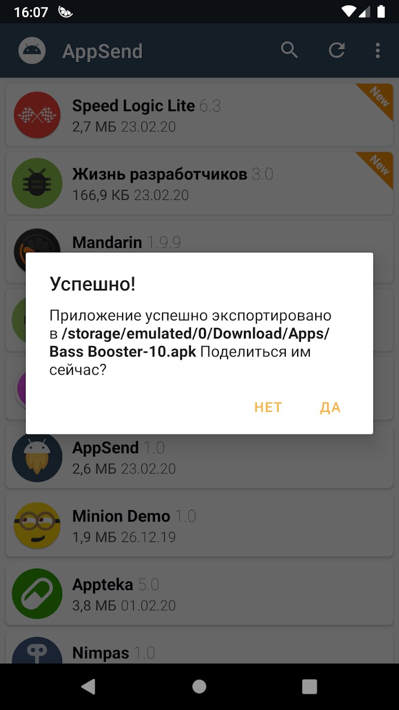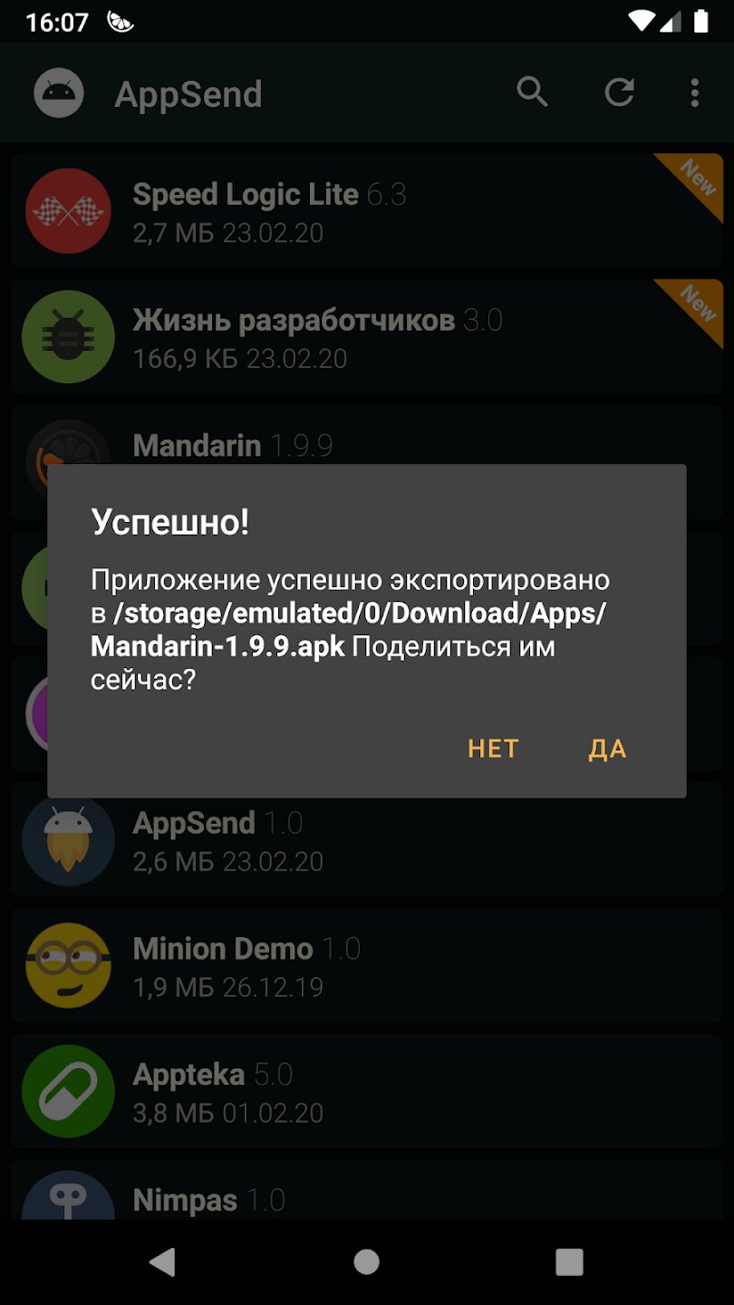 AppSend извлечет APK, установленные на вашем Android-устройстве, и помещает их в хранилище телефона.