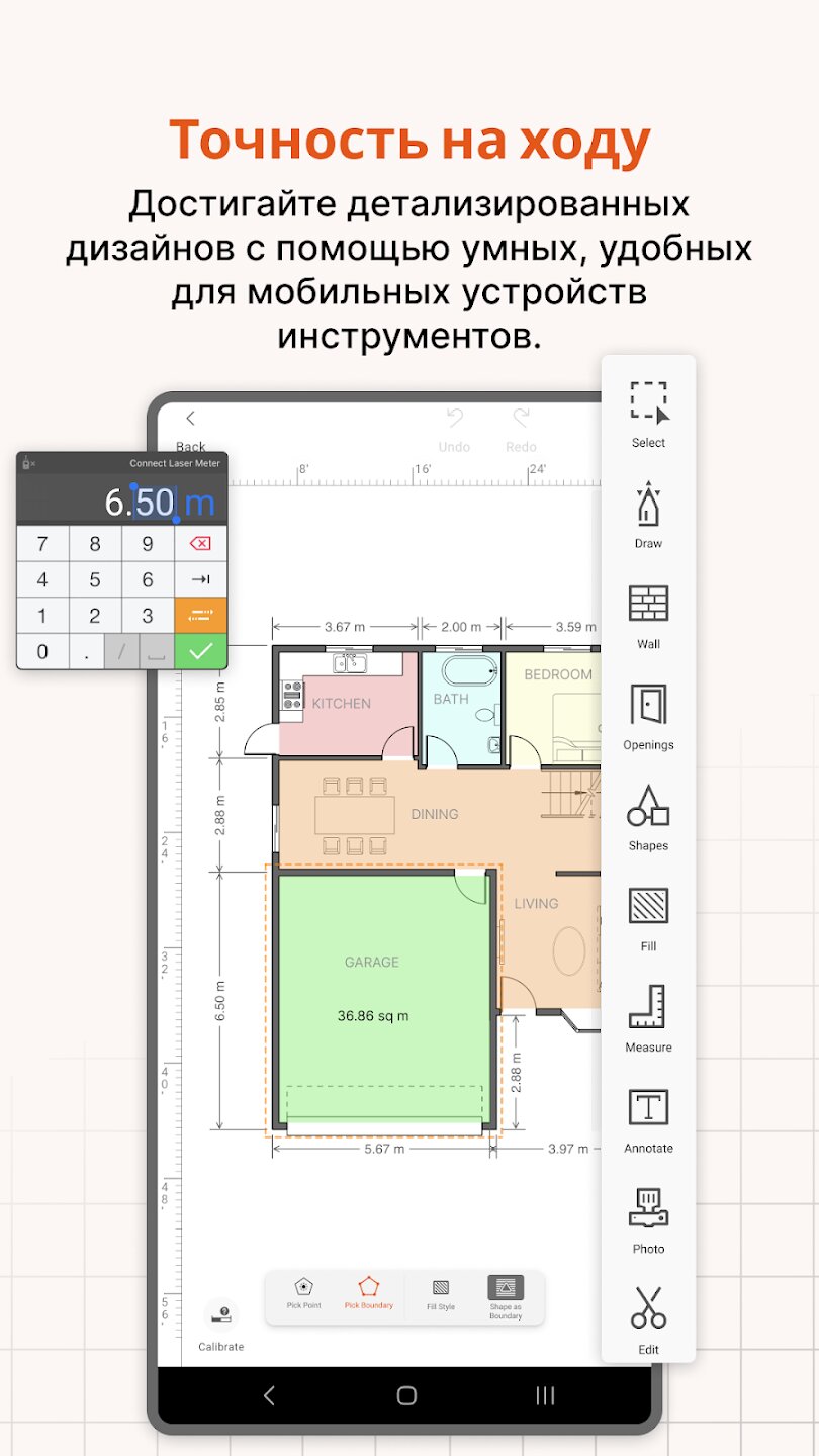 - Интуитивно понятные сенсорные инструменты CAD для рисования и проектирования на месте.