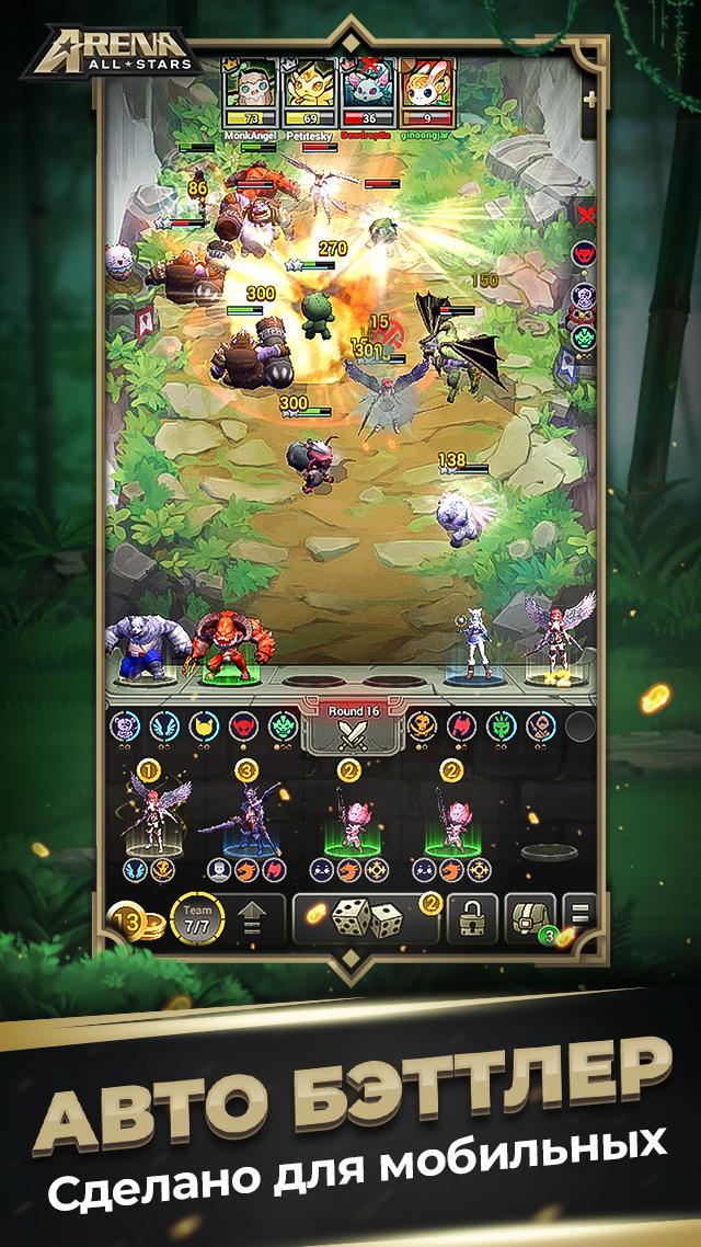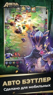 АВТОБАТТЛЕР, ОПТИМИЗИРОВАННЫЙ ДЛЯ МОБИЛЬНЫХ. Arena Allstars адаптирует ваши любимые функции автоматического сражения и улучшает ваш мобильный игровой опыт двумя способами: (1) быстрое действие и короткие игровые раунды, (2) вертикальное наведение экрана, (3) большие символы/значки и (4) оптимизированный пользовательский интерфейс и элементы управления.