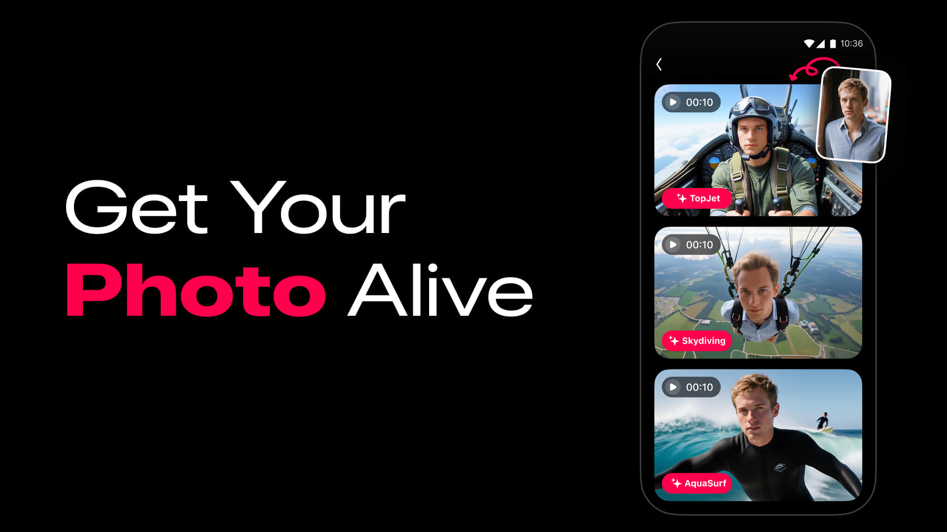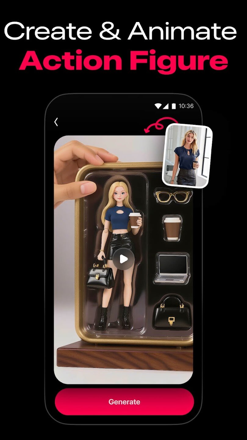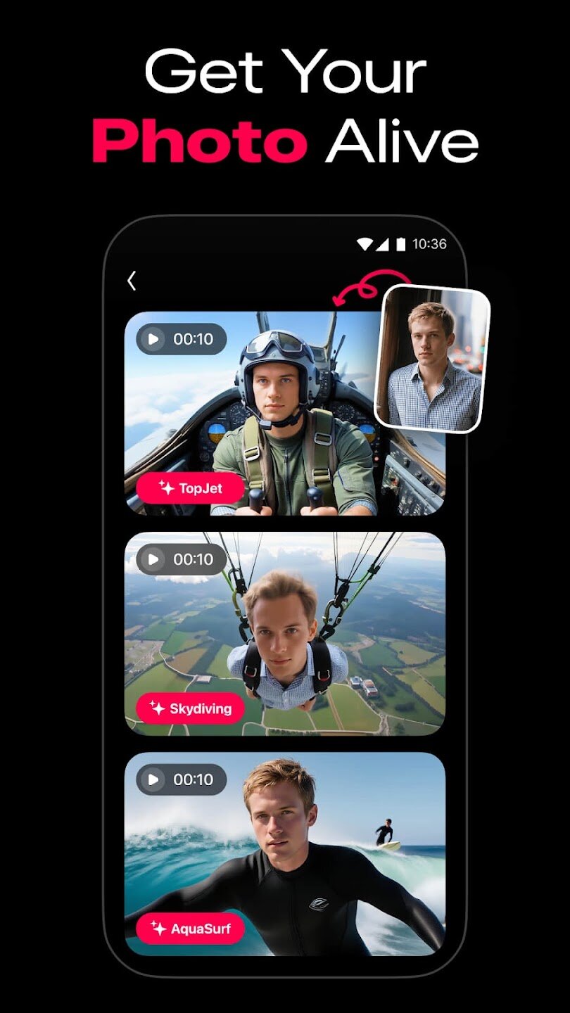 Приложение предоставляет обширную библиотеку популярных шаблонов и эффектов, готовых к вирусной рассылке, для настройки ваших творений. Вы можете мгновенно стать русалкой в подводной сцене, парить над городскими пейзажами с серией Fly или превратиться в движущуюся фигурку. Другие шаблоны, такие как FairyWings или Skydiving, добавляют к вашим фотографиям впечатляющие магические элементы или экстремальные действия одним касанием, устраняя необходимость в каких-либо навыках редактирования.