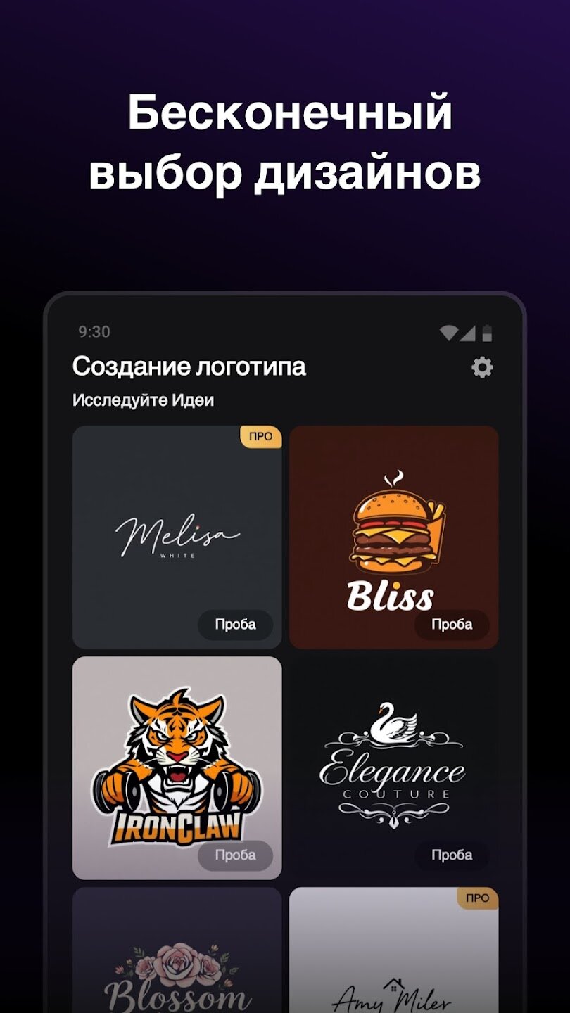 Готовый логотип можно легко адаптировать под разные носители – от визиток до соцсетей. Инструмент предлагает полный контроль над деталями: меняйте цвета, шрифты, композицию, чтобы добиться идеального результата.