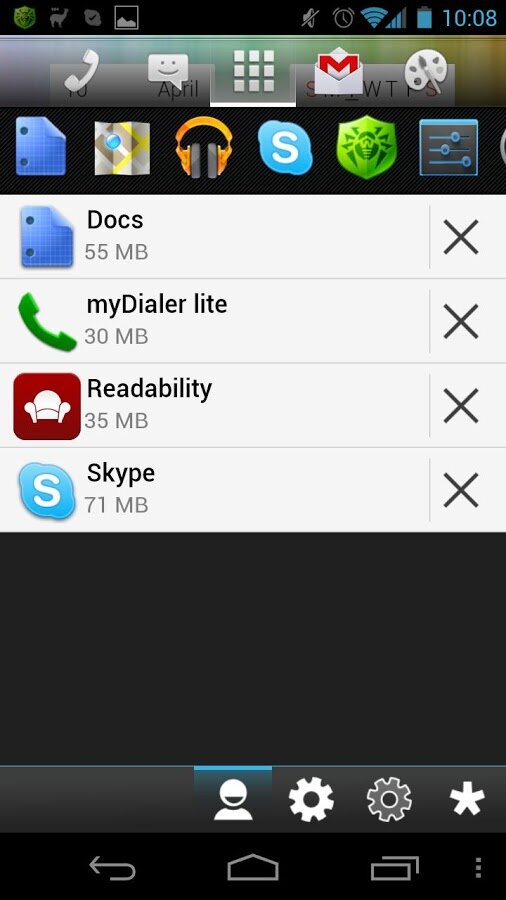 В aShell имеется инновационный нижний бар с кнопками журнала звонков, текстовых сообщений и менеджер задач (в меню «Приложения»). Также есть наэкранные кнопки настроек, где можно, к примеру, выбрать обои или эффект перехода между рабочими столами (с предварительным просмотром).