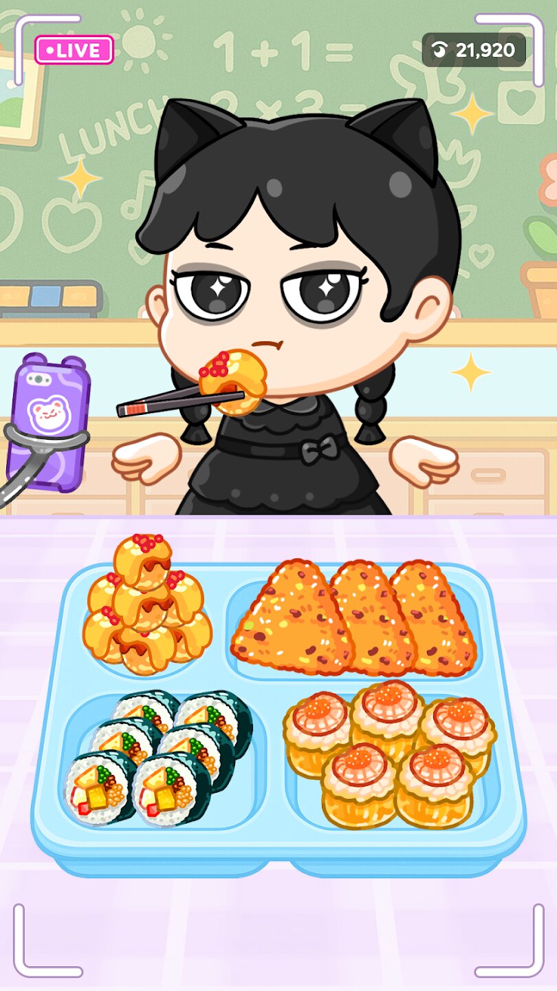 Как только ваше угощение будет готово, пора выходить в прямой эфир и общаться с поклонниками. Основой игры является иммерсивная стриминговая сессия, в которой центральное место занимают реалистичные ASMR-звуки еды и приготовления пищи. Общайтесь со зрителями через веселые чаты и наблюдайте, как растет количество ваших подписчиков. Ваш успех в этих прямых трансляциях напрямую переводится в виртуальную валюту, которая необходима для расширения вашего контента и личного стиля.
