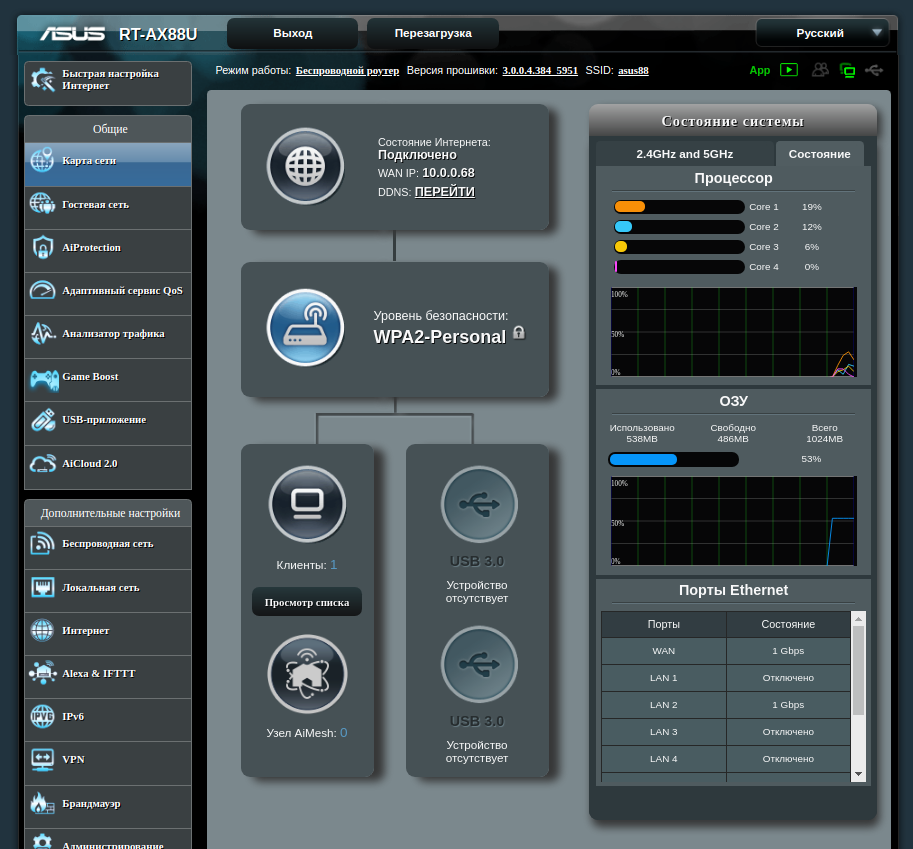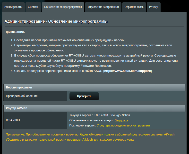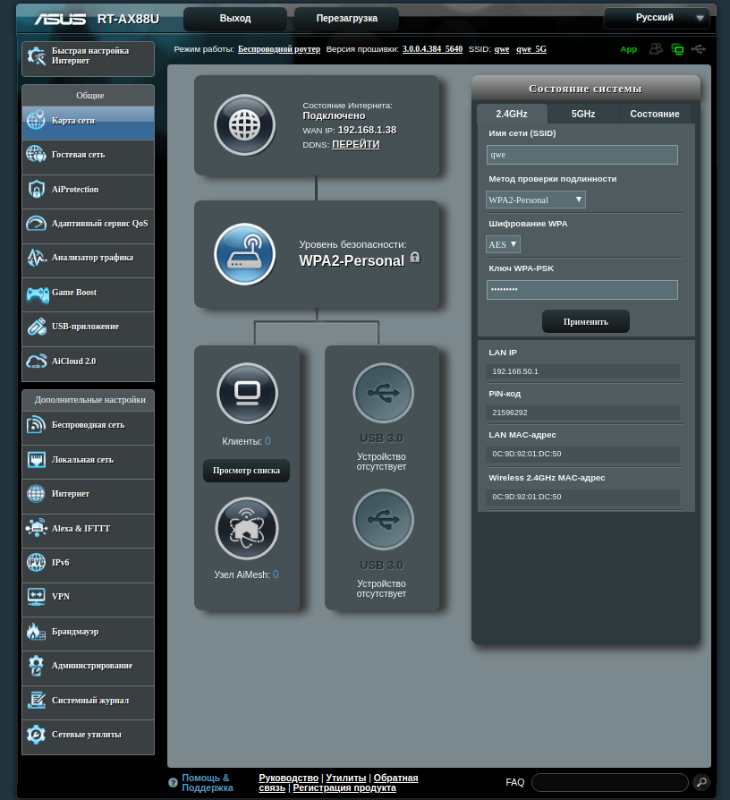 На момент экспериментов, прошивка ASUS RT-AX88U была обновлена до версии 3.0.0.4.384.5640 (3004.384.5640.g559cbda).