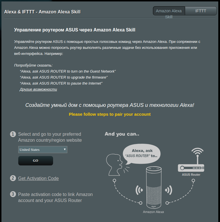 Как и у некоторых других моделей ASUS, в этом роутере имеется модная фича по управлению им через голосовые команды Amazon Alexa, жаль вот только Алисы от Яндекса здесь нет.
