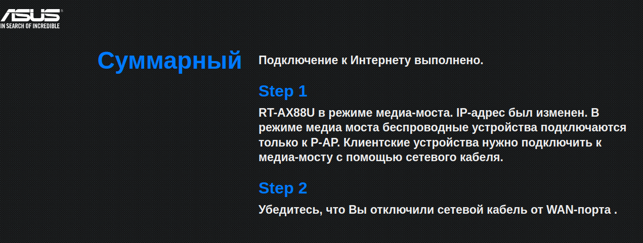 Поскольку ASUS RT-AX88U относится к премиум-классу домашних устройств, он поддерживает все режимы работы: Беспроводной роутер, Режим повторителя, Режим точки доступа, Media Bridge и AiMesh.