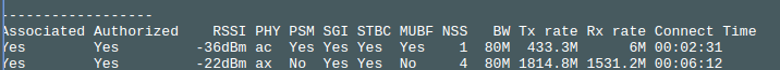 При подключении двух ASUS RT-AX88U в режиме media bridge в 5 ГГц диапазоне и шириной канала 160 Мгц, в логах главного роутера можно найти указание на примерную скорость передачи данных (3843 Мбит/с в каждую сторону). При использовании полосы 80 МГц, скорость, отмеченная в логах, получается практически в два раза ниже — 1800 Мбит/с.
