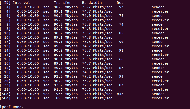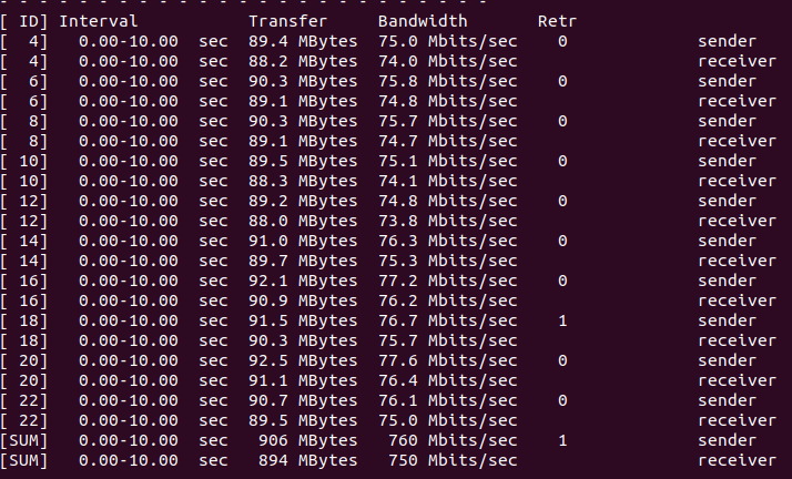 В реальности, при измерении с помощью iperf 3 и ширине канала 80 МГц, скорость передачи данных между двумя клиентами, подключенными к гигабитным портам разных роутеров, составляет около 750 Мбит/с в обоих направлениях. При ширине канала 160 МГц, скорость составляет около 950 Мбит/с и уже упирается в возможности самого гигабитного интерфейса.