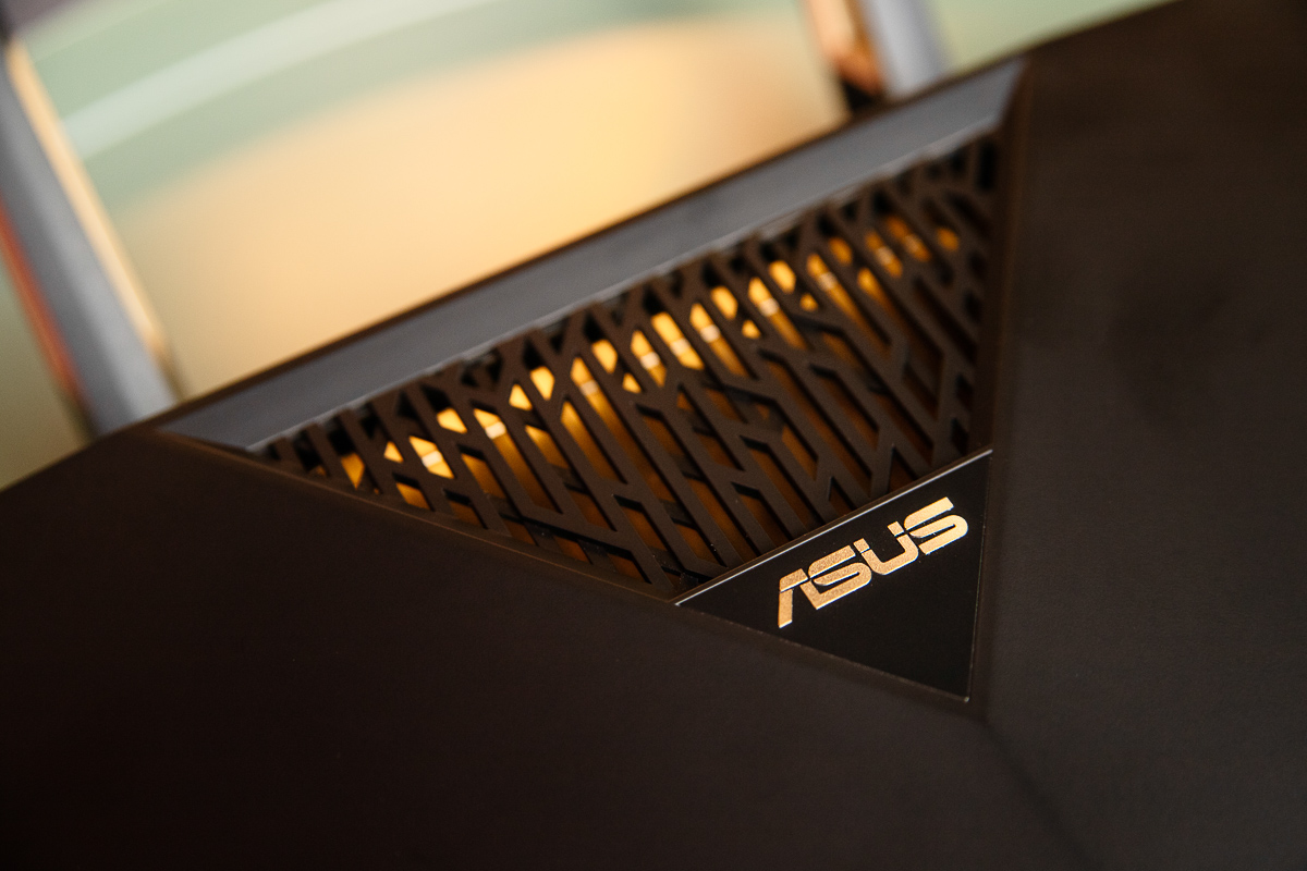 Над индикаторами располагается золотистая эмблема ASUS и достаточно обширная сетка, которая служит для эффективного охлаждения устройства.