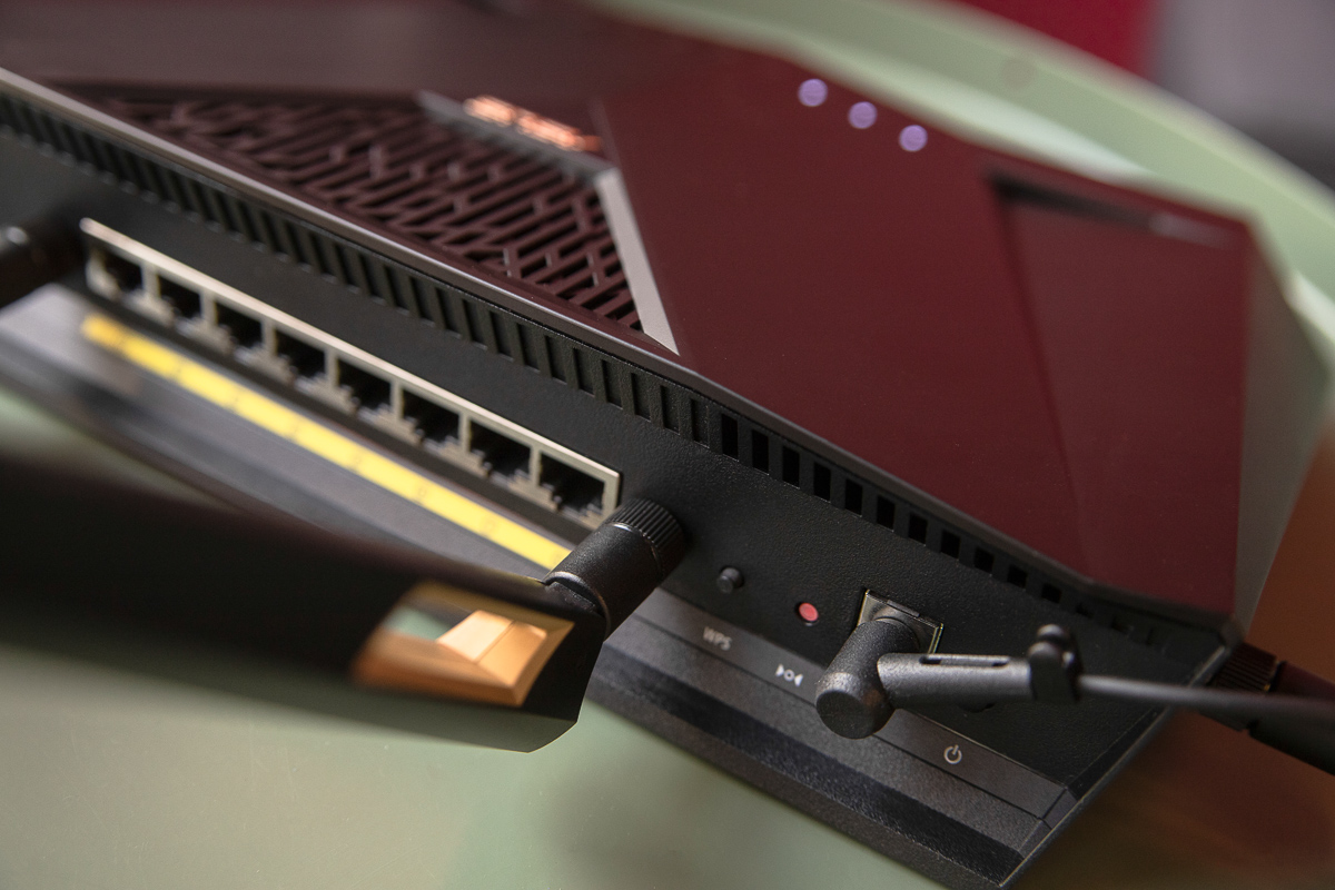 Сердцем ASUS RT-AX88U выступает высокопроизводительный SoC Broadcom BCM49408 с четырьмя 64-битными ARM-ядрами, работающими на тактовой частоте 1,8 ГГц. SoC поддерживает работу с памятью DDR3 и имеет встроенный 5-портовый гигабитный свитч. Так как у роутера портов больше, к SoC подключен еще один отдельный 4-портовый коммутатор на основе чипа Broadcom BCM53134. Для обеспечения беспроводной связи к SoC подключено два радиомодуля Broadcom BCM43684, которые собственно и отвечают за поддержку протокола 802.11ax, модуляции 1024-QAM и каналов шириной 160 МГц. Оперативная память объемом 1 Гбайт в этой модели представлена одним чипом DDR3, а для хранения прошивки используется NAND-чип объемом 256 Мбайт.