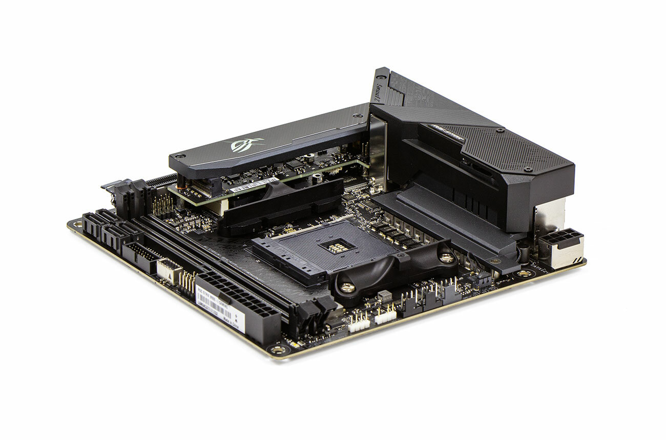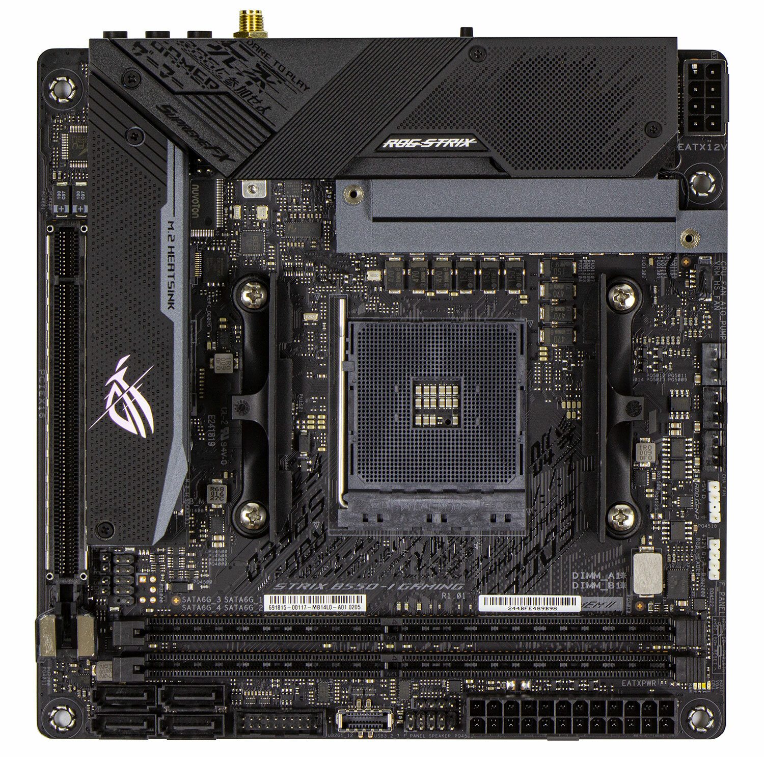 STRIX B550-I Gaming выполнена в формате Mini ITX, размер платы составляет 170 × 170 мм. Собрана она на базе набора системной логики B550, ориентированной на процессоры AMD Ryzen третьего поколения.