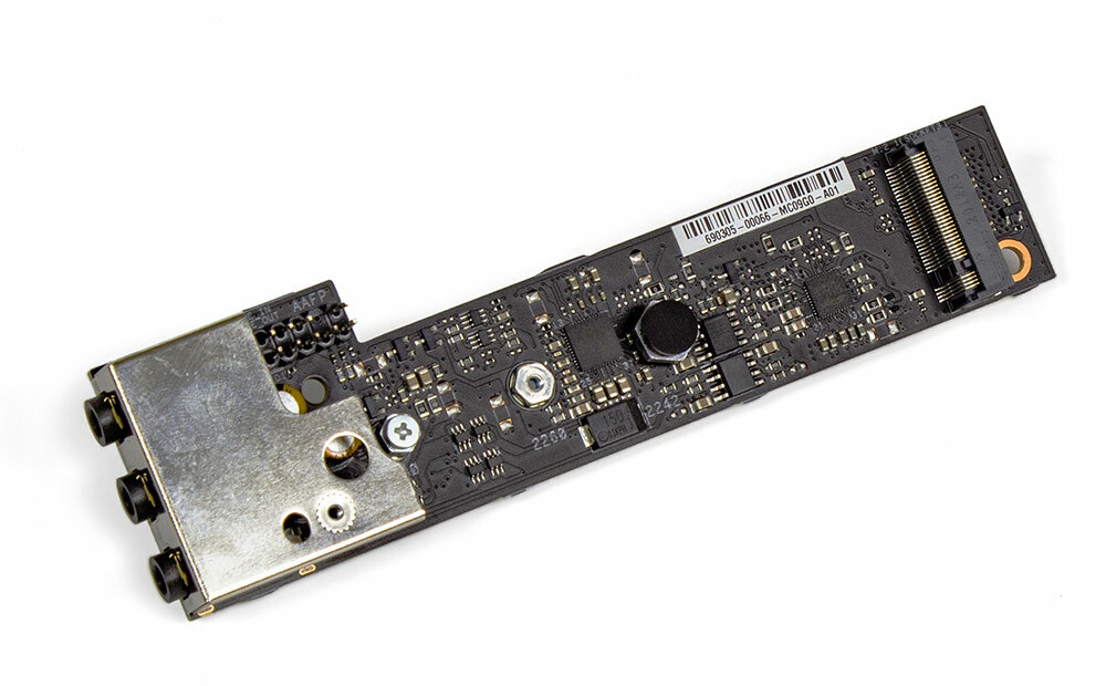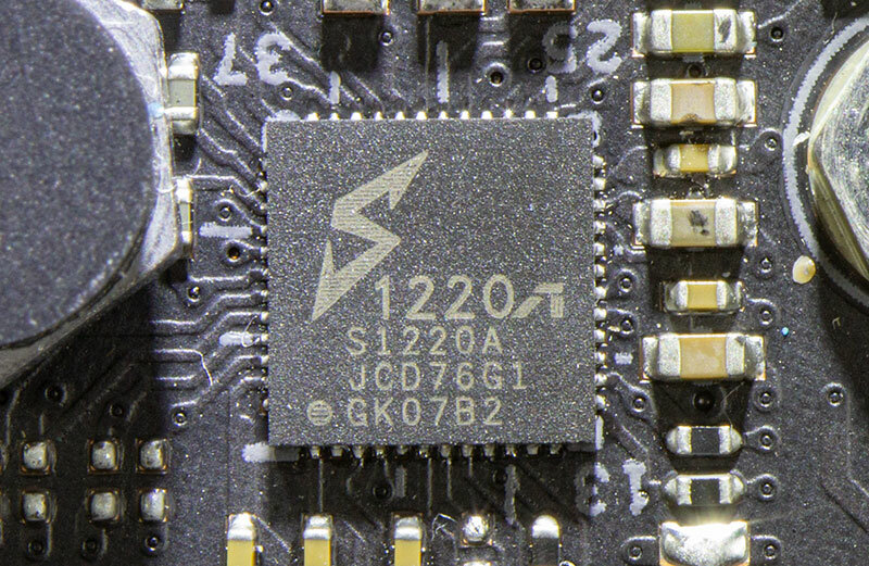 Небольшая плата с разъемом M.2 (лицевая часть) вмещает также аудиокарту SupremeFX на кодеке Realtek S1220A.