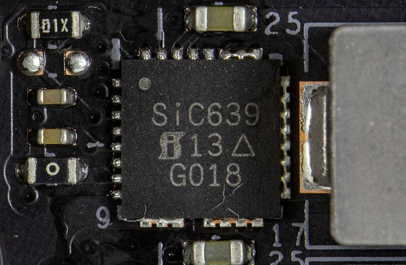 В качестве силовых ключей используются Vishay VRPower DrMOS SiC639, способные пропустить ток до 50 ампер. Стоит отметить, что мосфеты устанавливаются с большим запасом по току, так как параметры кристалла (самого ключа) при высокой температуре и значительной нагрузке «уплывают». Это, в свою очередь, негативно сказывается на чистоте выходного напряжения.