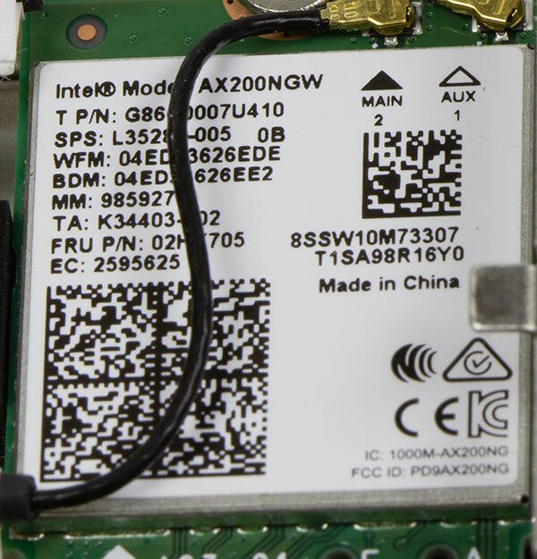Контроллер адаптеров Wi-Fi и Bluetooth (Intel AX200) скрыт металлической крышкой на задней панели.
