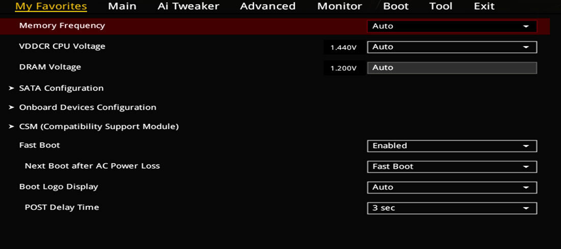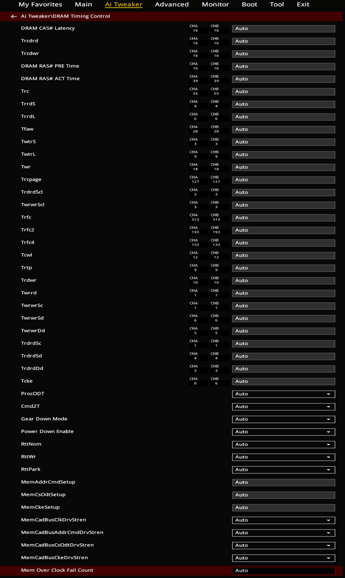 А она осуществляется преимущественно из раздела Ai Tweaker, который идёт сразу после Main. Несмотря на обрезанные возможности, разделов в нем по-прежнему много. Ведь есть ещё тайминги, напряжения...