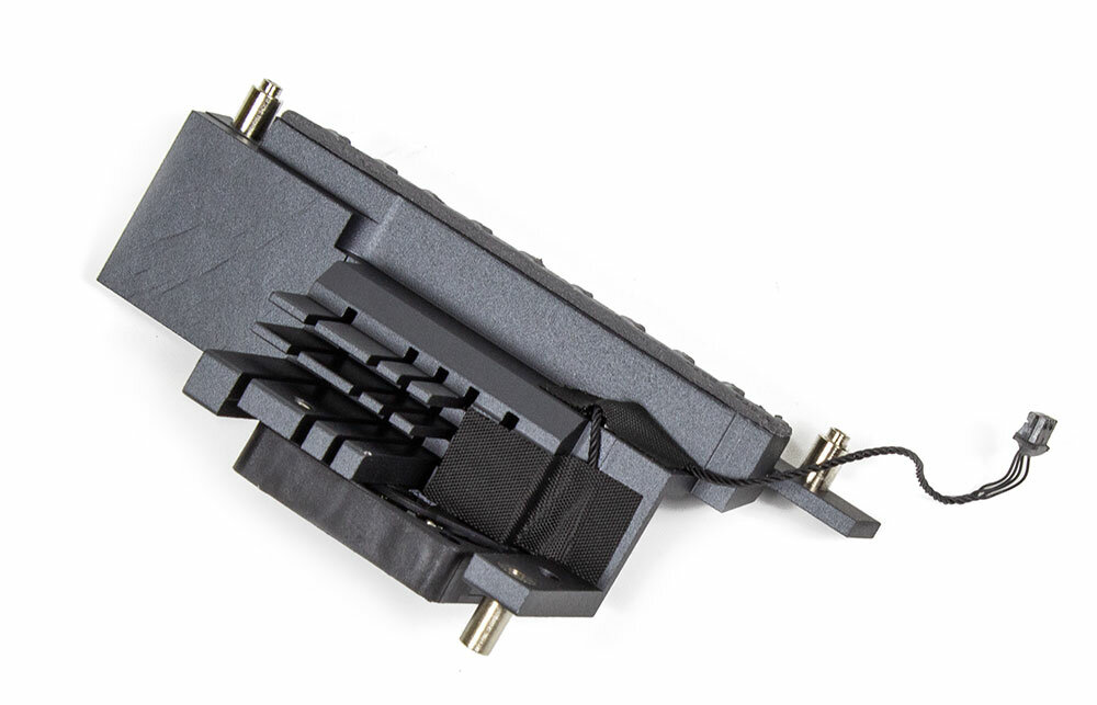 Под ним установлен сложной формы крупный алюминиевый радиатор, оснащенный вентилятором 20 × 20 мм. Громоздкая (в масштабах этой материнской платы) конструкция охлаждает силовую часть процессорного преобразователя питания.
