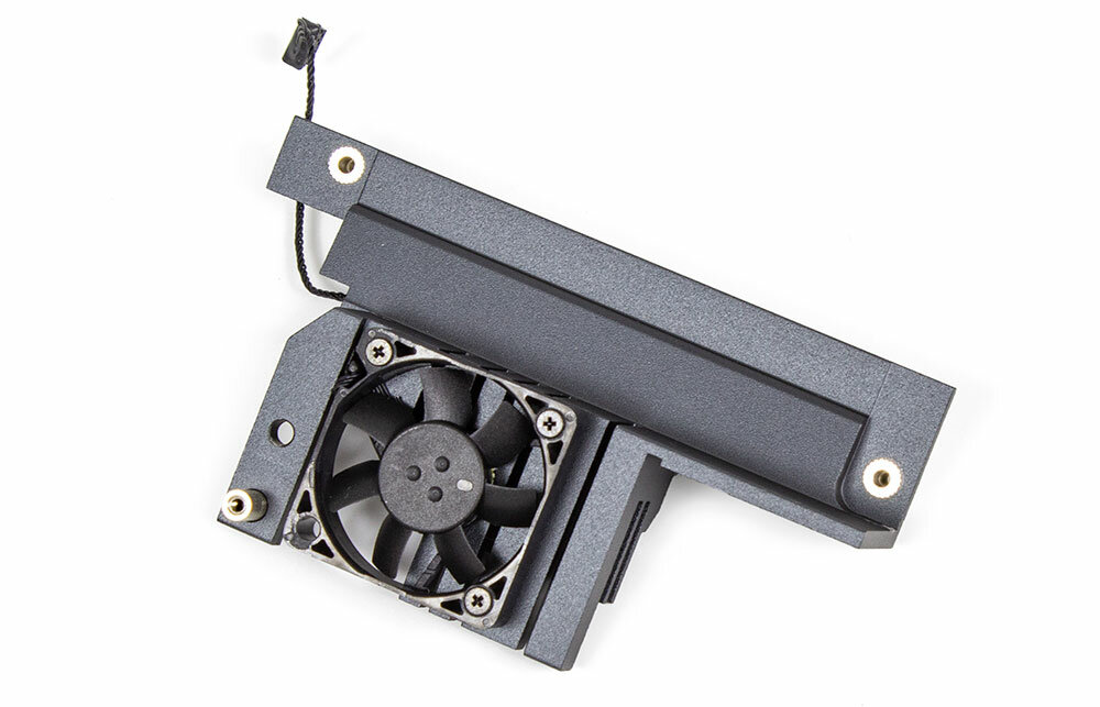 Крепление радиатора — винтовое, для возможности замены на что-то более производительное (например, при установке малогабаритной системы охлаждения на процессор).