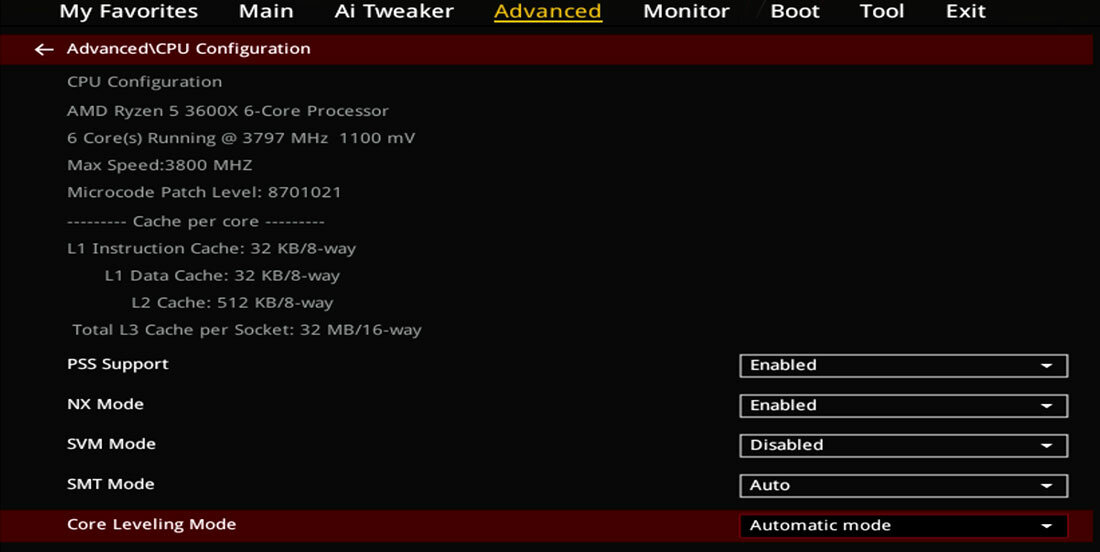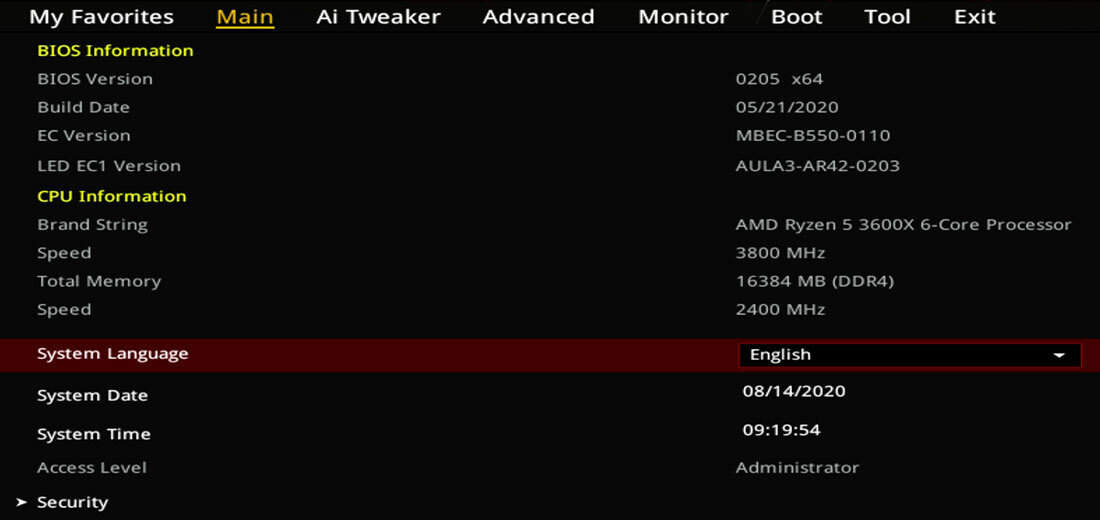 Кнопка F7 открывает более привычный Advanced Mode с классическим меню. Самый левый раздел — My Favorites, в нем пользователь сам собирает наиболее часто используемые параметры. Конечно, в платах на логике B550 он не так актуален ввиду изрядно обрезанных возможностей по разгону (спасибо AMD), но, тем не менее, тонкую настройкцу системы никто не отменял.