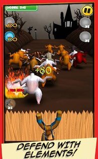 Что может быть позорней, чем погибнуть от удара жареной курицы?! Вооружайся рогаткой и спасай свою жизнь, запуская в них камни. Охраняй себя от армии жареных цыплят и не позволяй им пересекать твою границу. Они пришли за тобой — не надо было сжигать их дом и превращать их в свой ужин. Целься в Золотую жареную курицу, чтобы усилить свою защиту!