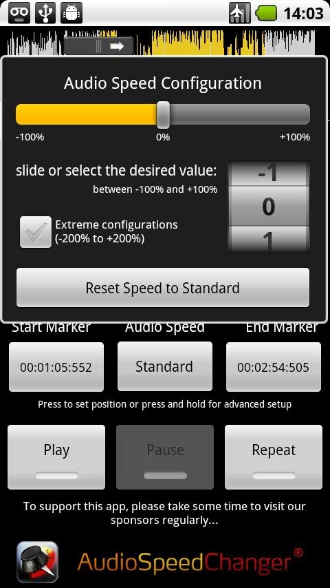 Audio Speed Changer — приложение для изменения скорости воспроизведения музыки без изменения звуковых характеристик. Удобен для экономии времени на прослушивание аудиокниг или подкастов.
