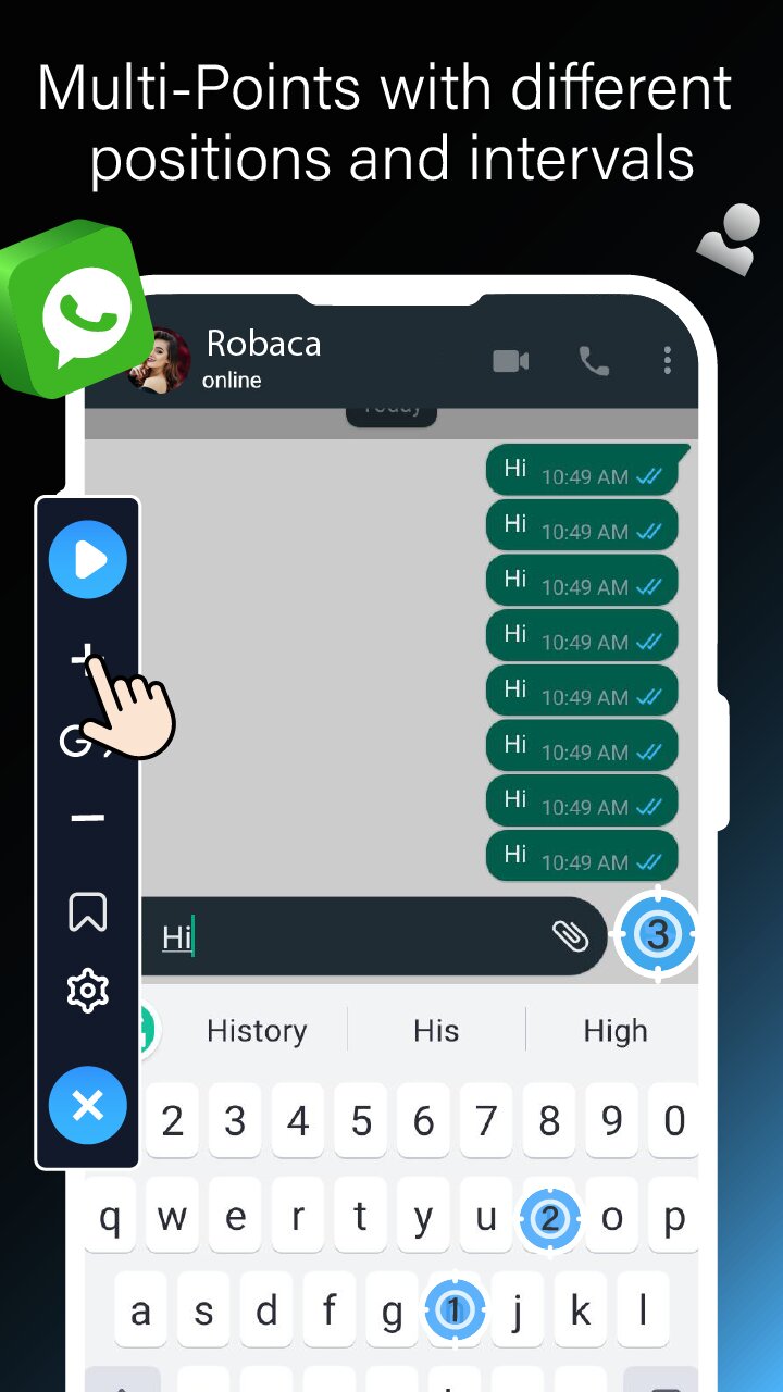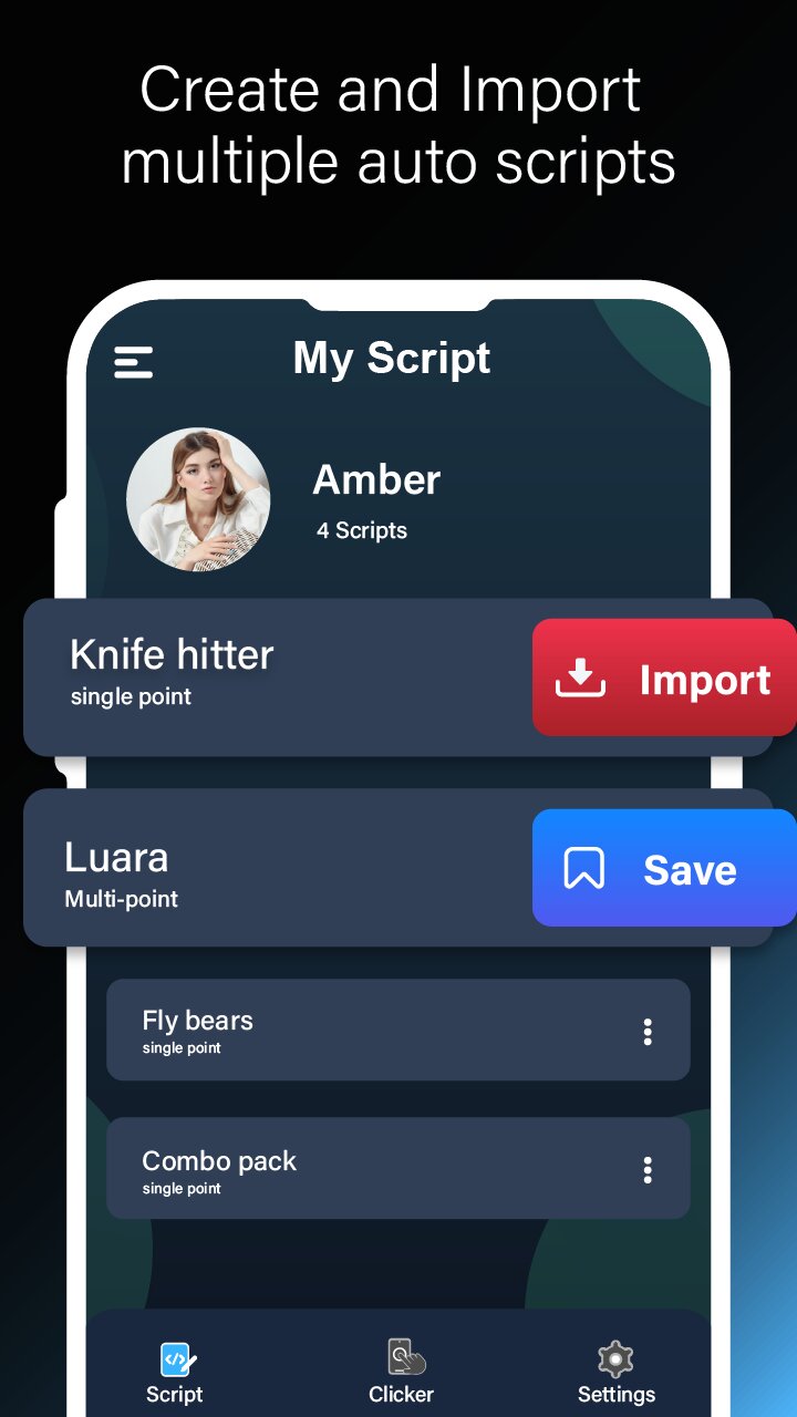 Приложение имеет удобную плавающую панель управления, которая позволяет настраивать несколько макросов касаний прямо на экране. Вы можете определить любое количество мест нажатий, установить пользовательские интервалы между действиями и даже автоматизировать прокрутку. Эта настройка позволяет запускать и останавливать скрипт автоматического нажатия в любое время одним касанием, что значительно экономит время и усилия во время длительных игровых сессий или рутинных задач.