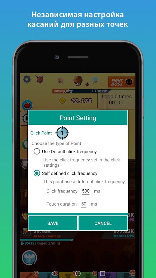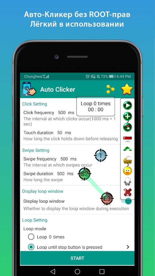 Авто-Кликер – это полезный и простой инструмент, благодаря которому вы сможете записывать свои жесты и устанавливать частоту и время касаний.