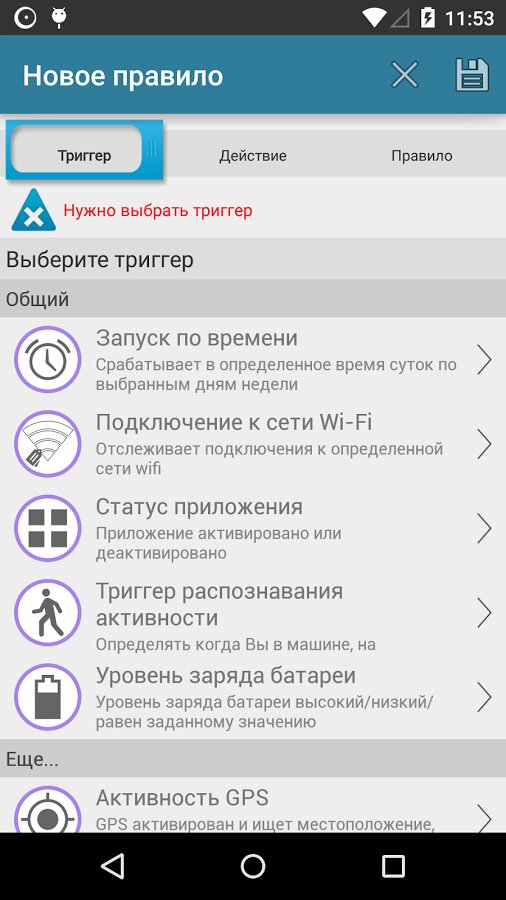 AutomateIt — приложение, позволяющее полностью автоматизировать ваш смартфон.Вы можете задать определенные правила при совершении некоторых действий. Например, при запуске Яндекс.Карты — включить GPS, при выходе из приложения — выключить.