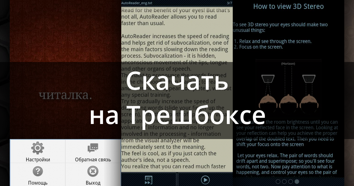 AutoReader 3D — нестандартная читалка с необычными функциями, развивающая скорочтение с режимом 3D Stereo.