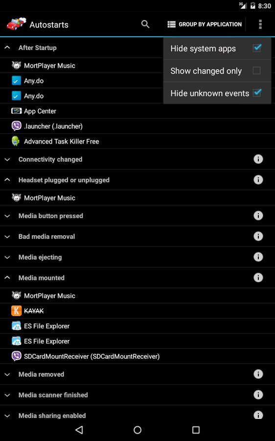 Программа позволяет контролировать девайс, позволяя следить за приложениями, работающими в фоне. Она покажет, какие программы запускаются автоматически после загрузки, а также другие системные события, происходящие в фоне (например получение СМС, нажатие клавиш)