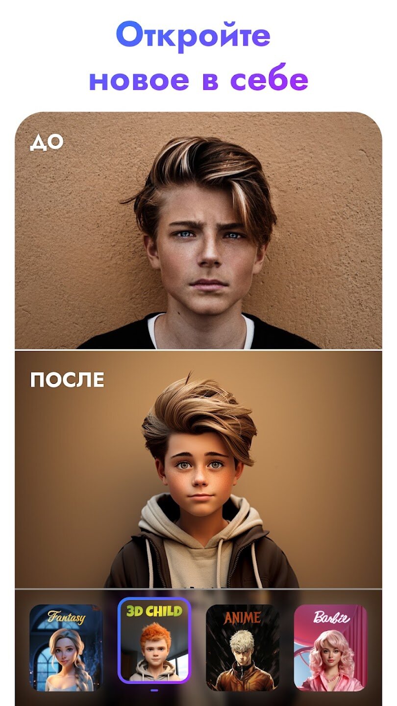 Приложение предлагает расширенные возможности для творчества. Вы можете не только создавать профильные изображения, но и разрабатывать мемы, менять фон на фотографиях, экспериментировать с возрастными преобразованиями. Интеллектуальные алгоритмы точно сохраняют черты лица, обеспечивая узнаваемость в любом стиле.