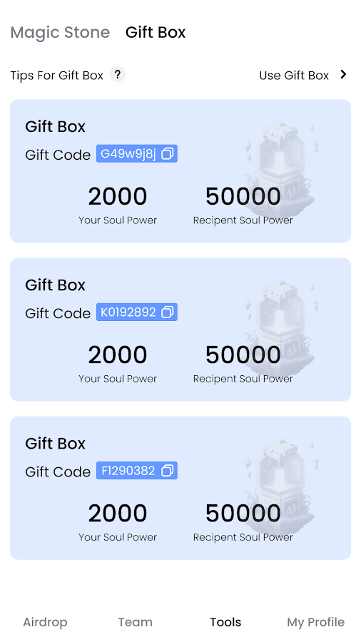 А для тех, кто хочет поднять свои впечатления от Avive на новый уровень, у нас есть волшебные камни и подарочные коробки, которыми вы можете обмениваться с другими пользователями. Эти предметы могут повысить ваши атрибуты и помочь вам зарабатывать еще больше ежедневных аирдропов.