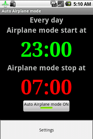 Авто режим полета — программа позволяет включать и отключать режим полета в заданное время.