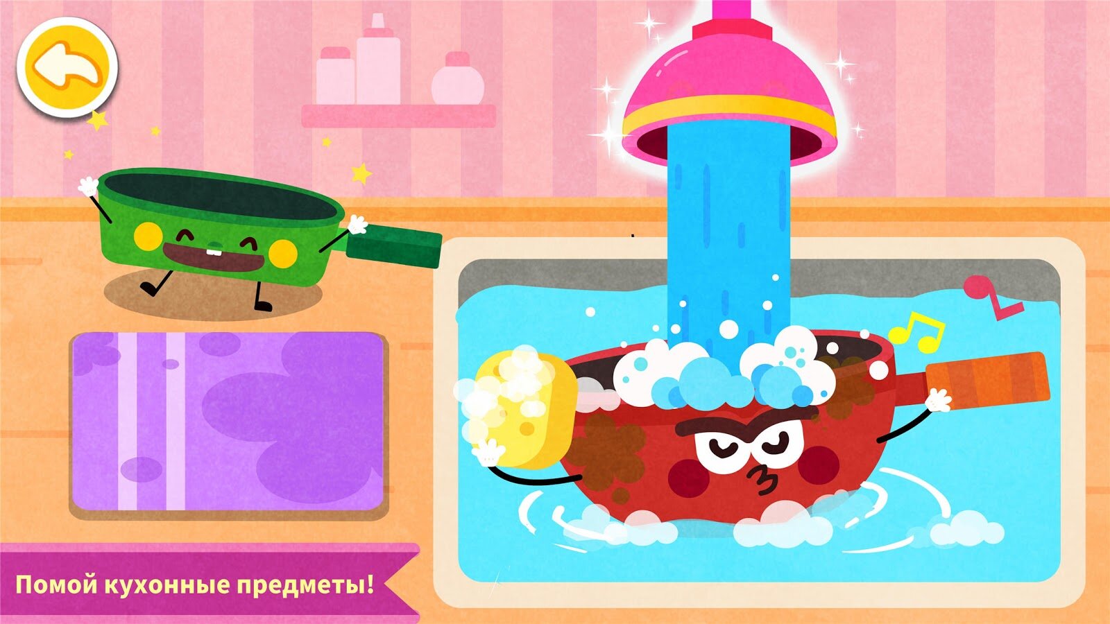- ЧИСТКА КУХОННЫХ ПРЕДМЕТОВ. Кухонные предметы такие грязные. Помой их. Выдави моющее средство на губку. Аккуратно потри кухонные предметы и все пятна исчезнут! На кухонных предметах так много пузырей. Включи воду и смой пузыри! Мы закончили чистку. Обязательно вытри предметы насухо полотенцем!