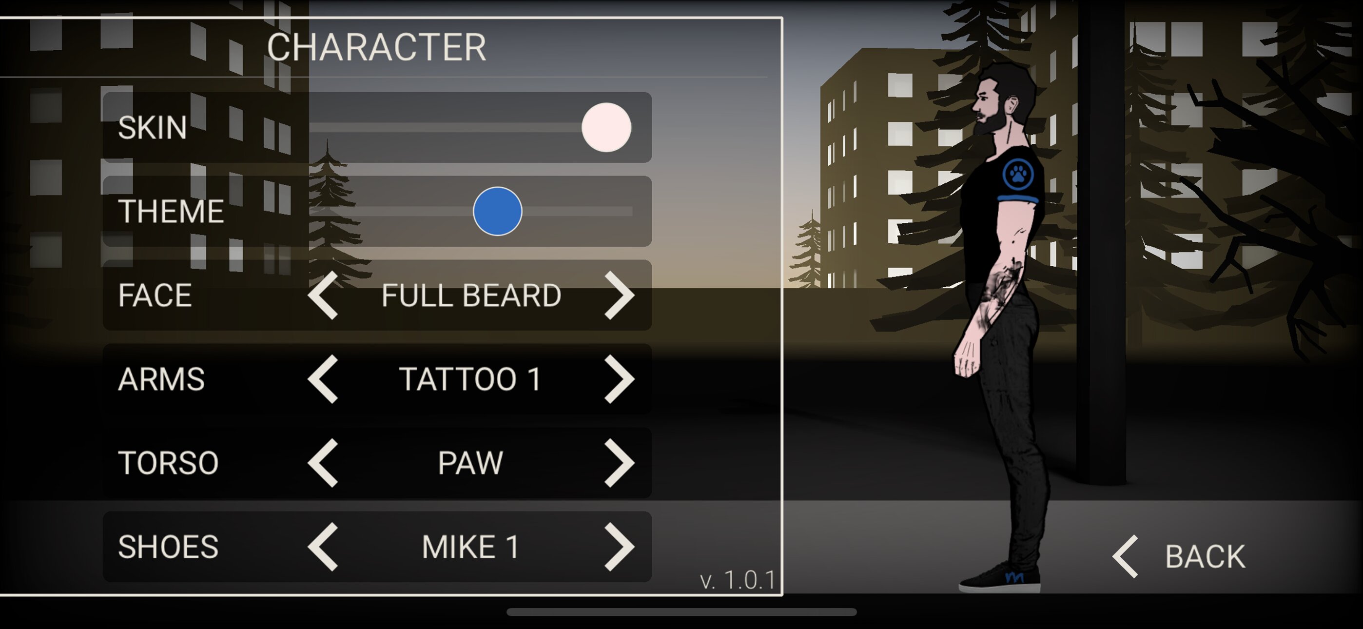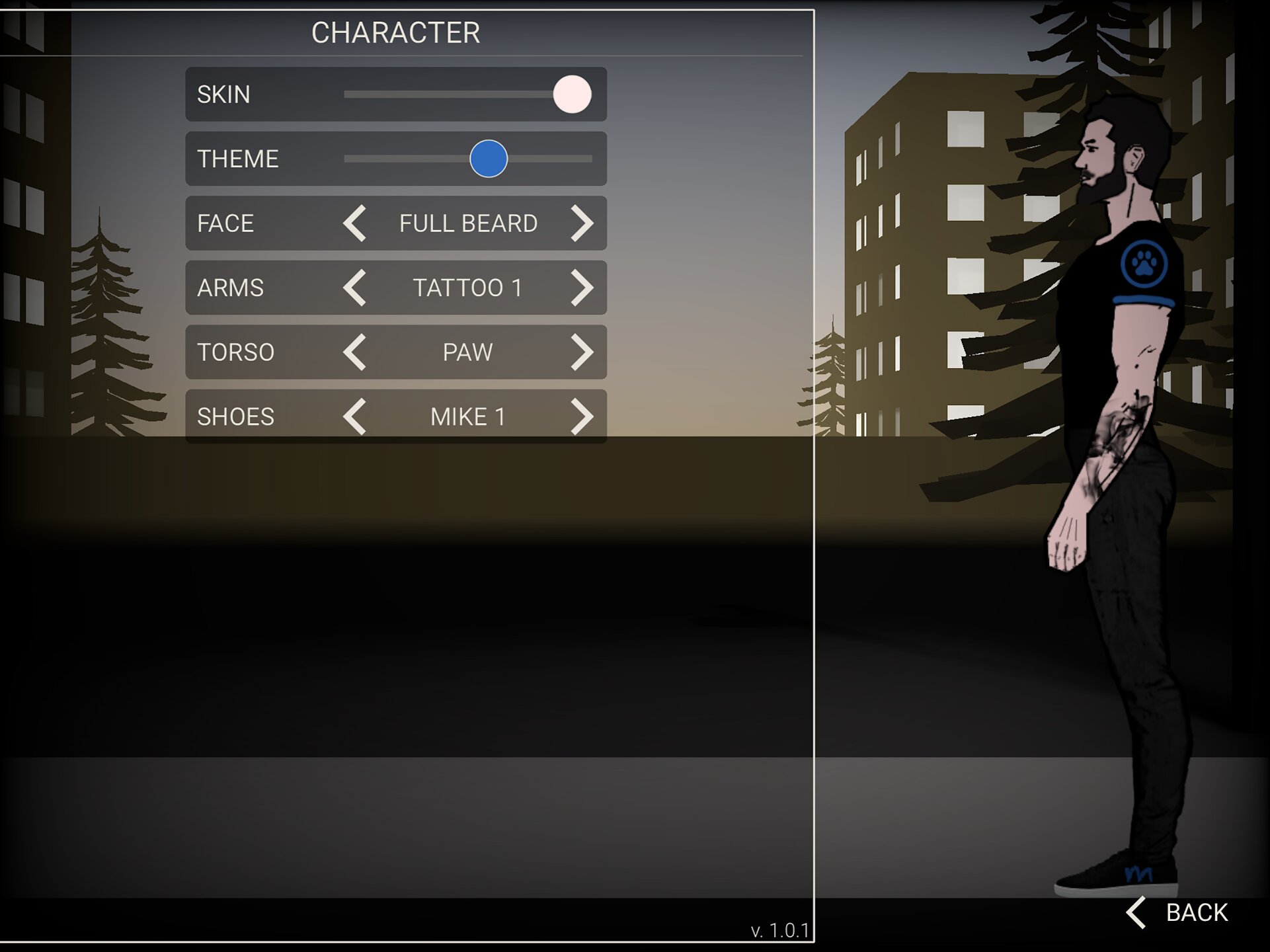 - Опции настройки персонажа