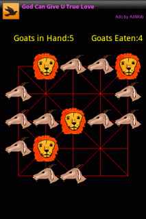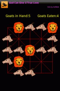 BaghChal — очень интересная логическая игра для Android, пришедшая к нам из Непала. Ваша задача — заблокировать 4 льва, используя для этого 20 коз. Лев может перепрыгнуть через одну козу и съесть ее, но он не может прыгать через две козы сразу. Первоначально на доске стоят 4 льва. Нужно поочередно выставлять по одной козе, стараясь заблокировать всех львов и не дать львам съесть 5 коз.