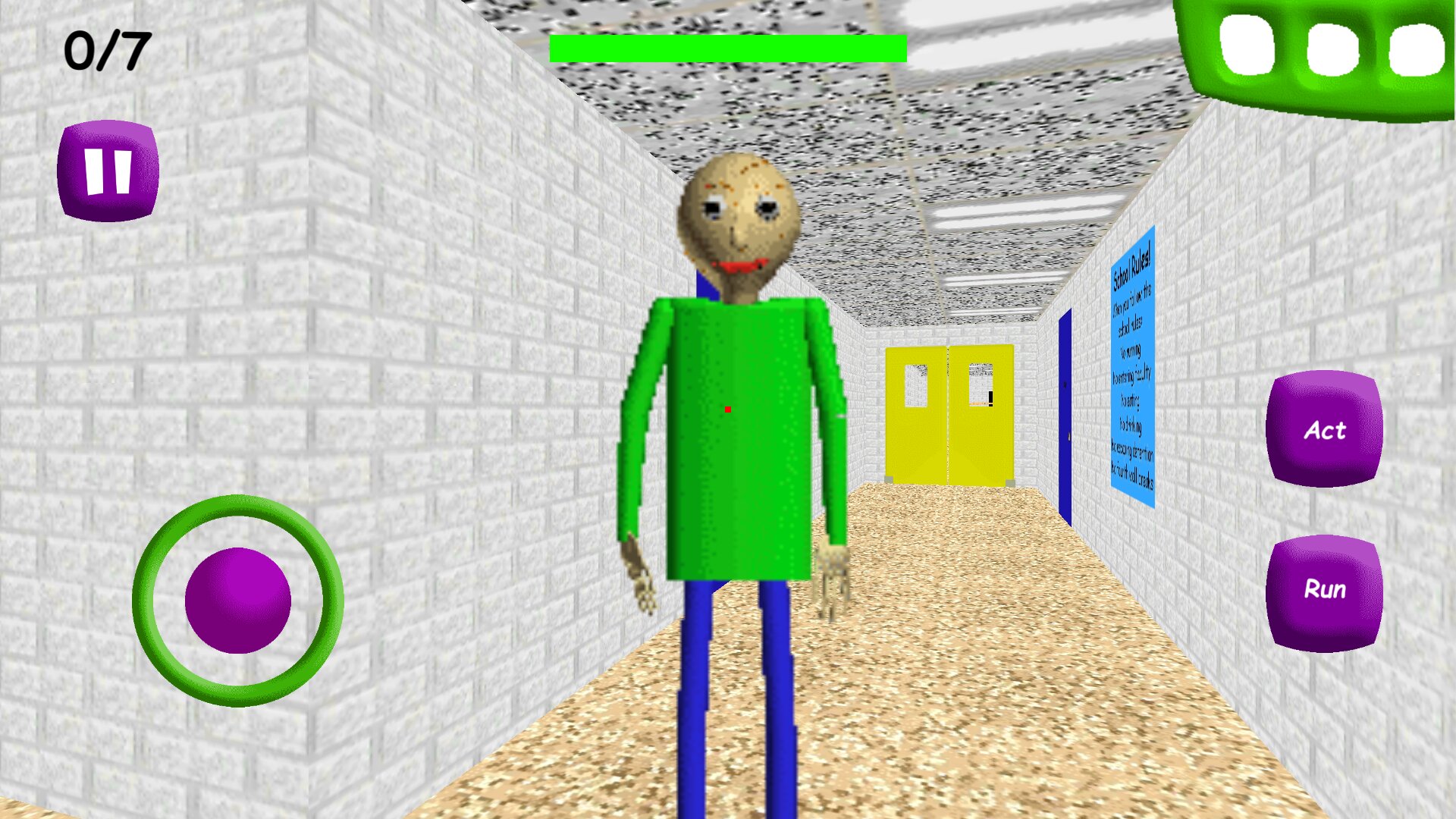 Baldis Basics In Education and Learning — нашумевшая игра, которую портировали с ПК. По сюжету, ваш друг забыл 7 своих тетрадей в школе, но если он вернётся за ними — то он опоздает на ужин. Но вот не задача! Учитель Балди любит задавать примеры своим ученикам в любое ему удобное время.