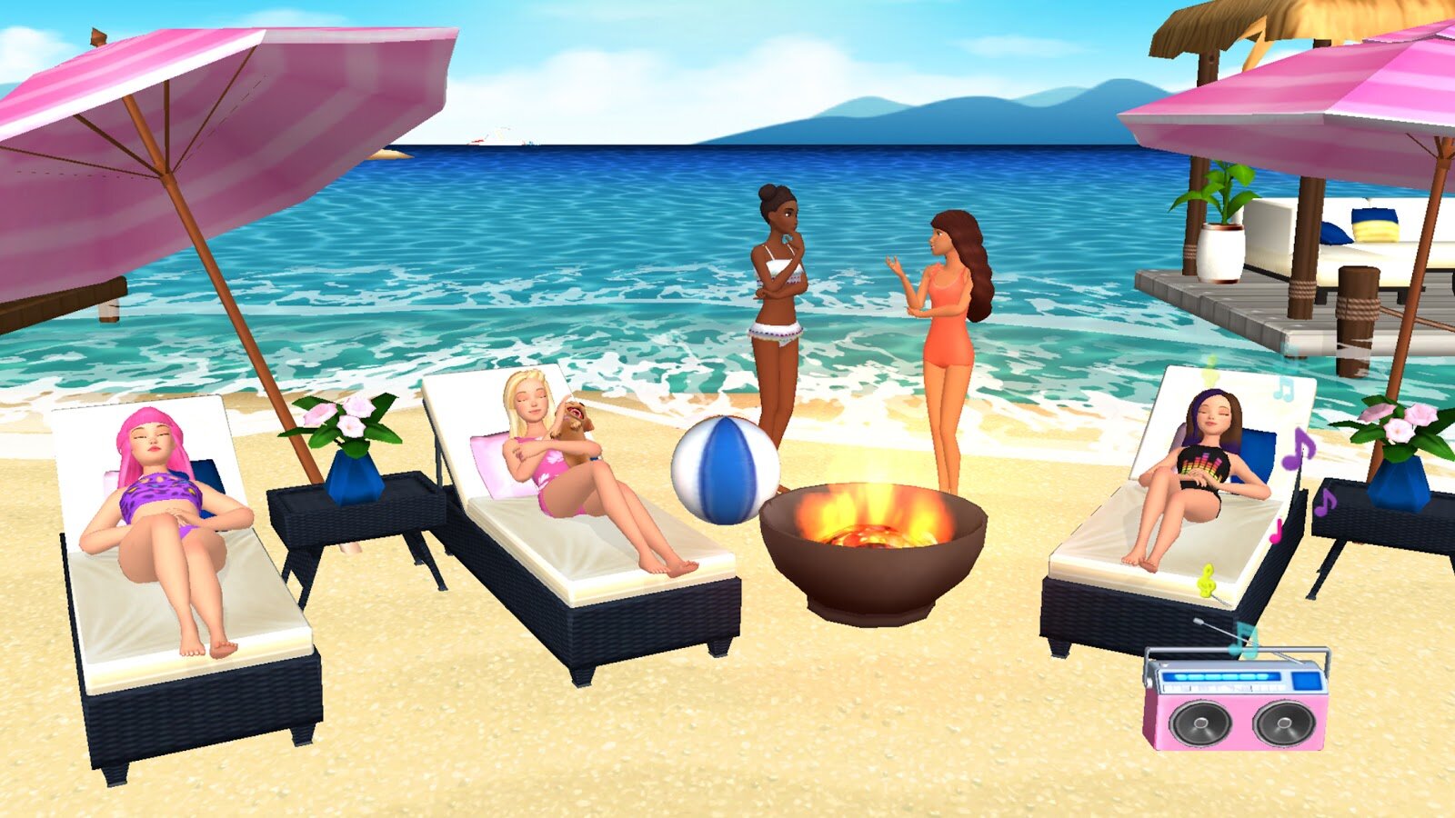- ЖАРКОЕ ЛЕТО. О боже! Наконец-то открылся пляж в Малибу! Ныряйте, плавайте, жарьте еду на гриле и стройте замки из песка! Вот только часть доступных вам развлечений! На пляж пускают даже щенков! Ловите волну на пляже Малибу вместе с Челси и Стейси!