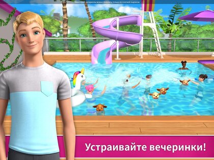 Создайте свой дом мечты для Барби! Украсьте и измените все комнаты. Познакомьтесь с моими лучшими друзьями, с щенками и Блиссой! Присоединяйтесь к нам: в доме мечты столько веселых дел! Мы будем печь пироги, танцевать и устраивать невероятные вечеринки у бассейна! Путешествуйте по Малибу в моем розовом кабриолете: в городе нас ждет множество развлечений!