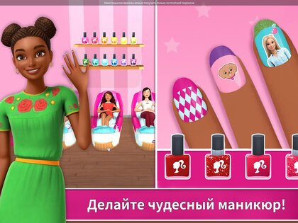 - ПОРА ПОБАЛОВАТЬ СЕБЯ. Садитесь за руль розового кабриолета и поезжайте на маникюр и СПА в Малибу! Возьмите с собой Рени и устройте прогулку для девчонок! Создайте собственный маникюр, ведь у вас такой большой выбор цветов, узоров и наклеек!