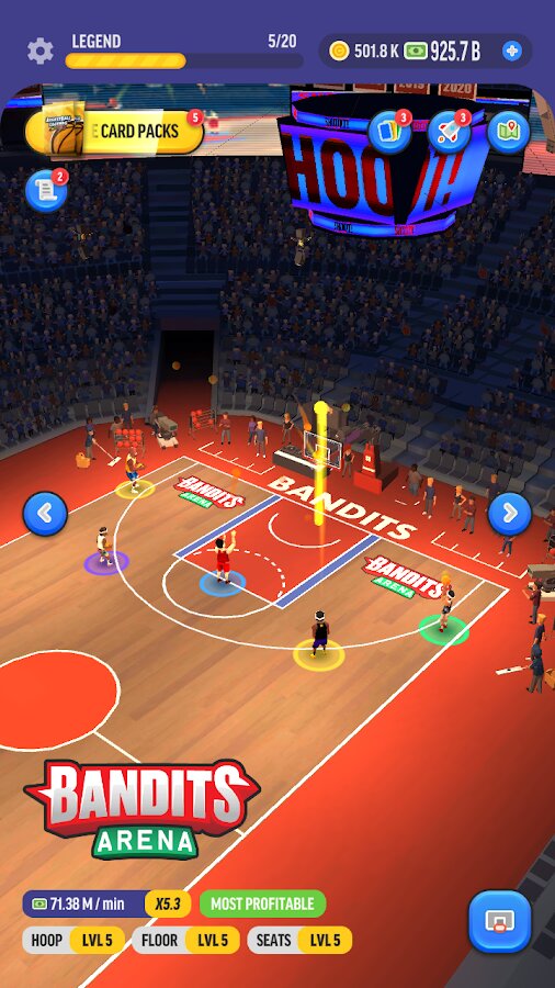 Собирайте карты, чтобы разблокировать новых звездных баскетболистов. Наймите главного тренера, который поможет вам управлять командой. Чирлидеры, маскоты и ди-джеи готовы поддержать ваших баскетболистов. Разблокируйте различные площадки в этой бесплатной простой игре спортивного менеджера. Станьте акулой спорта и лучшим спортивным менеджером.