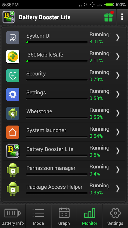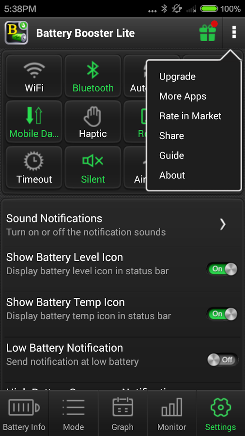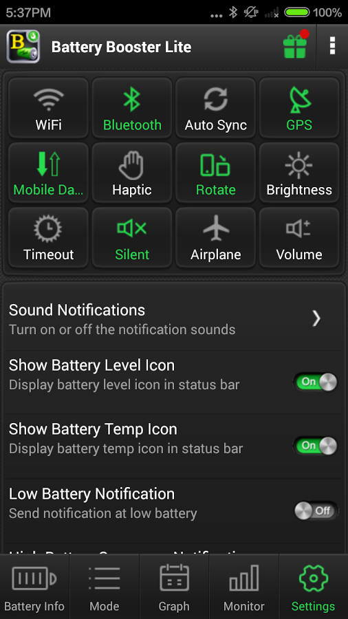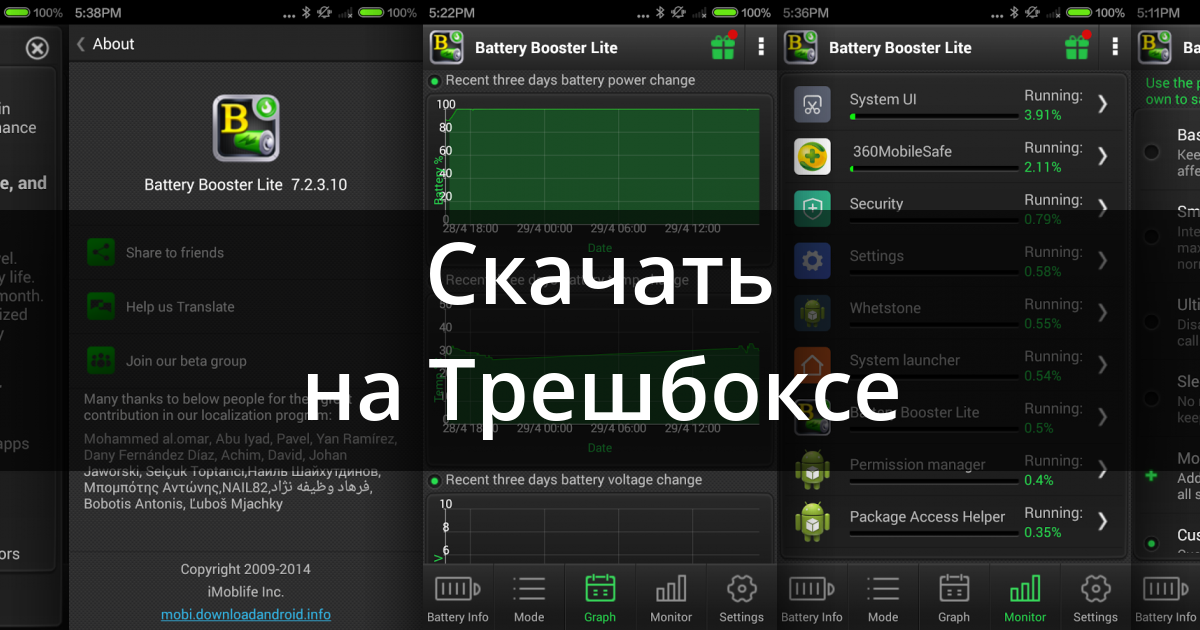 Battery Booster — с помощью этого приложения вы можете настроить свой Android-смартфон таким образом чтобы максимально продлить время его работы одного заряда батареи. Для этого вы можете настроить работу беспроводных интерфейсов Wi-Fi и Bluetooth, яркость дисплея, время автовыключения экрана смартфона. Для домашнего экрана имеется виджет, при помощи которого можно быстро изменить многие настройки приложения.