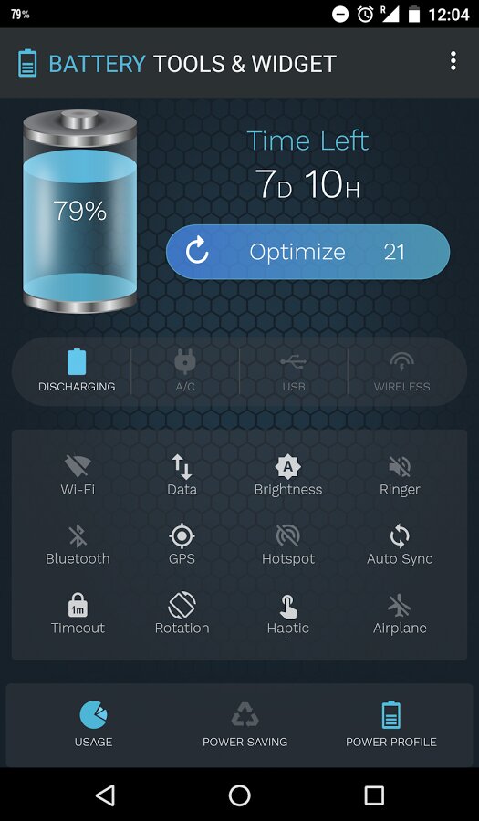 Battery Tools & Widget — приложение для мониторинга и оптимизации аккумулятора, предоставляет информацию об аккумуляторе, которая позволит вам контролировать потребление энергии. Приложение оценивает оставшееся время зарядки или разрядки аккумулятора. Можно включить собственный режим энергосбережения и оптимизировать энергопотребление с функцией оптимизации. Обе эти функции регулируются в настройках.