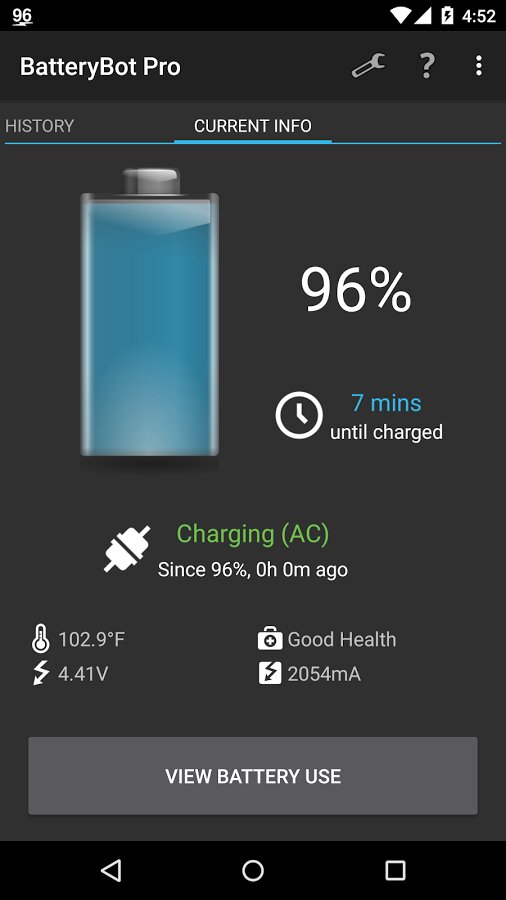 BatteryBot — продвинутый индикатор батареи. Уникальный, эксклюзивный индикатор батареи в статусной строке с виджетом! Battery Indicator Pro это небольшое приложение, которое отображает информацию о батареи в строке состояния Android и на домашнем экране. Индикация уровня заряда батареи Андроид не достаточна для вас? Это приложение решает эту проблему.