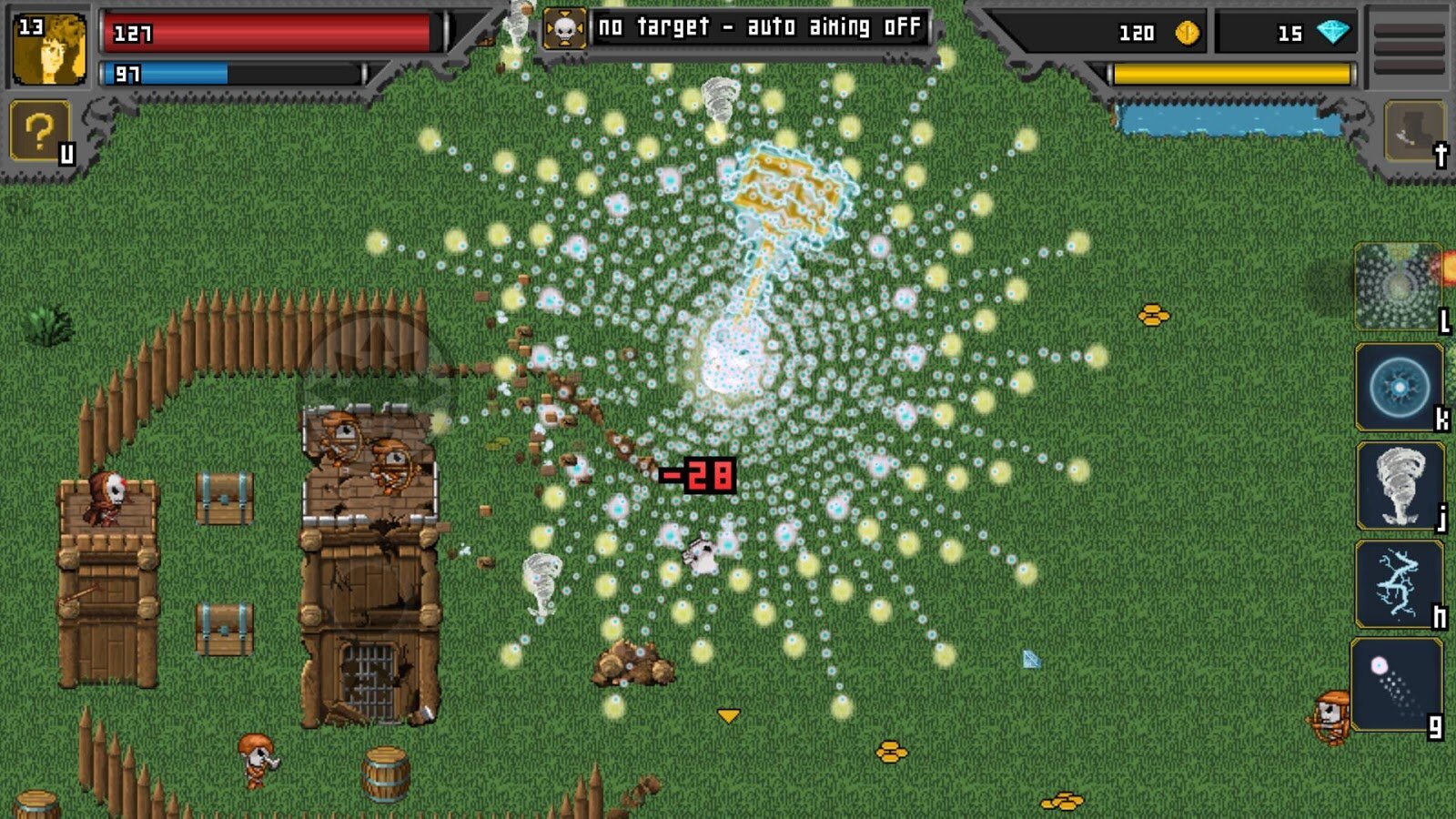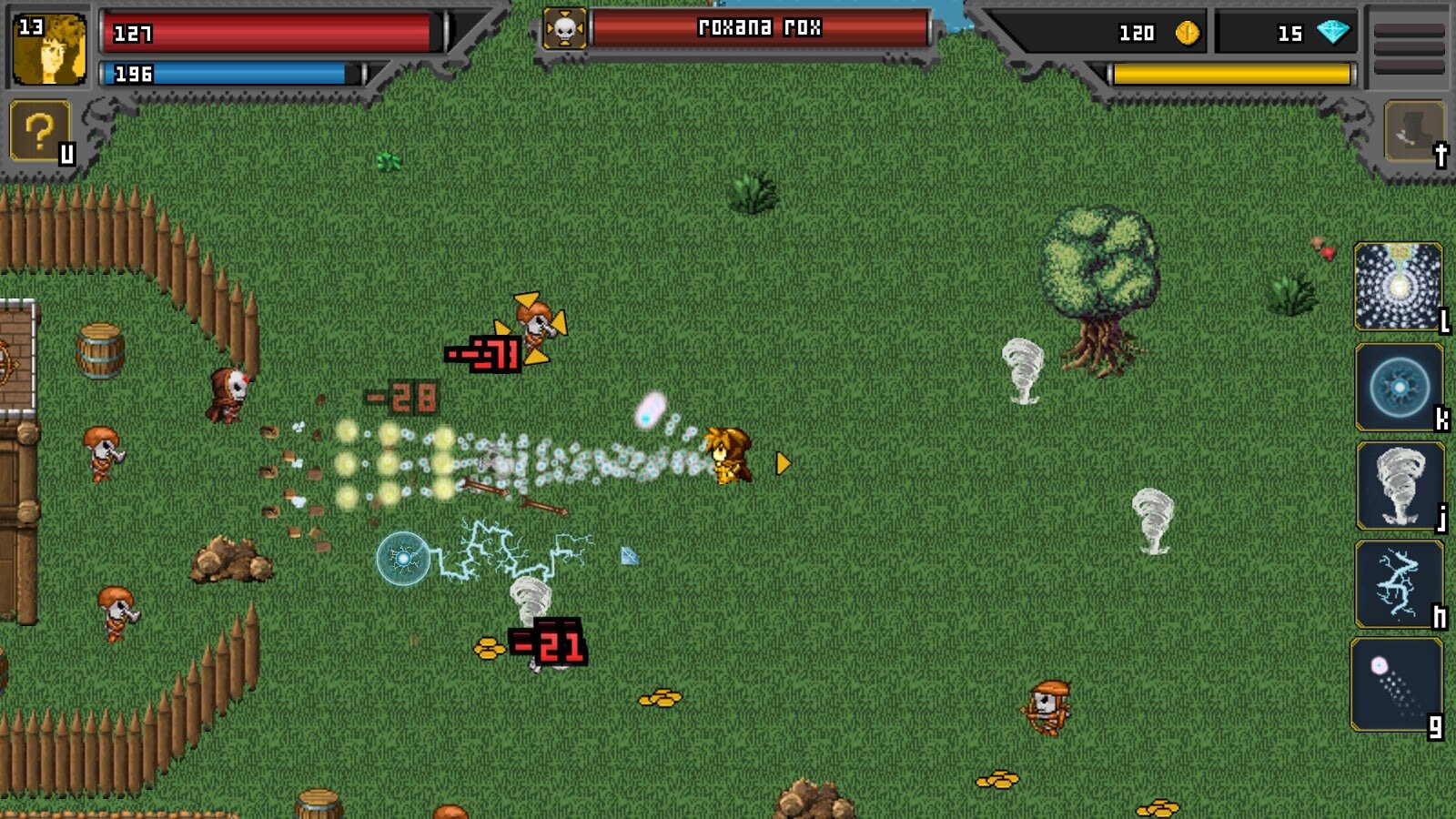 В распоряжении есть один магический заряд, огненный шар, ледяная бомба, ускорение и необычное заклинание, сравнивающее здоровье и ману. Этот арсенал помогает справляться с огромным количеством белоснежных скелетов, распространившихся по окрестностям. Необходимо убить их всех, исследуя каждый закоулок карты.