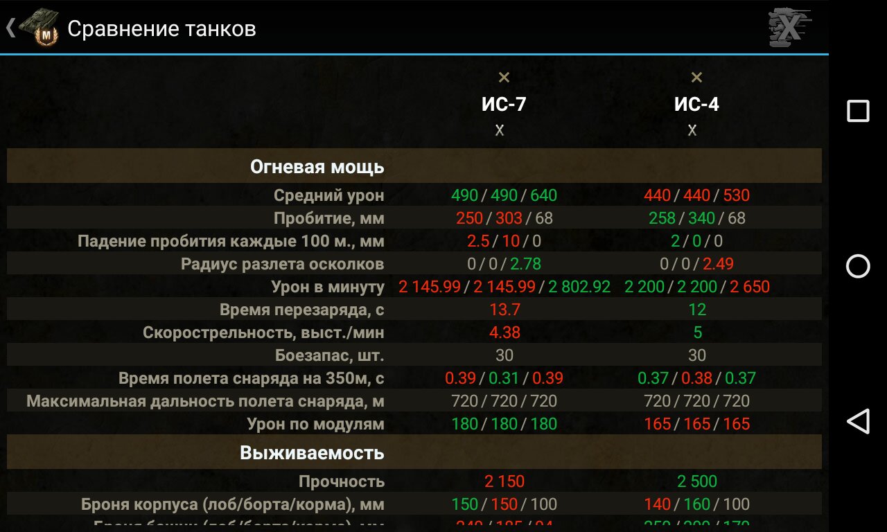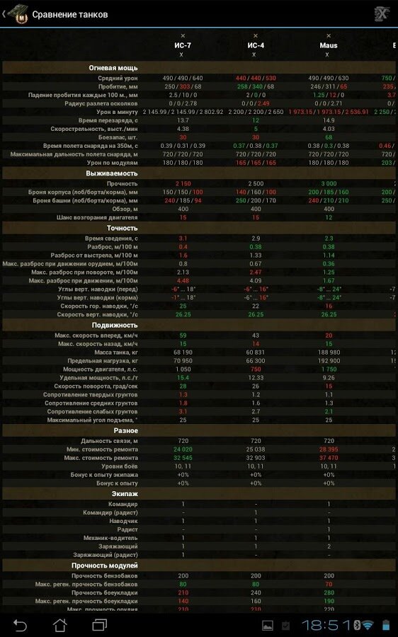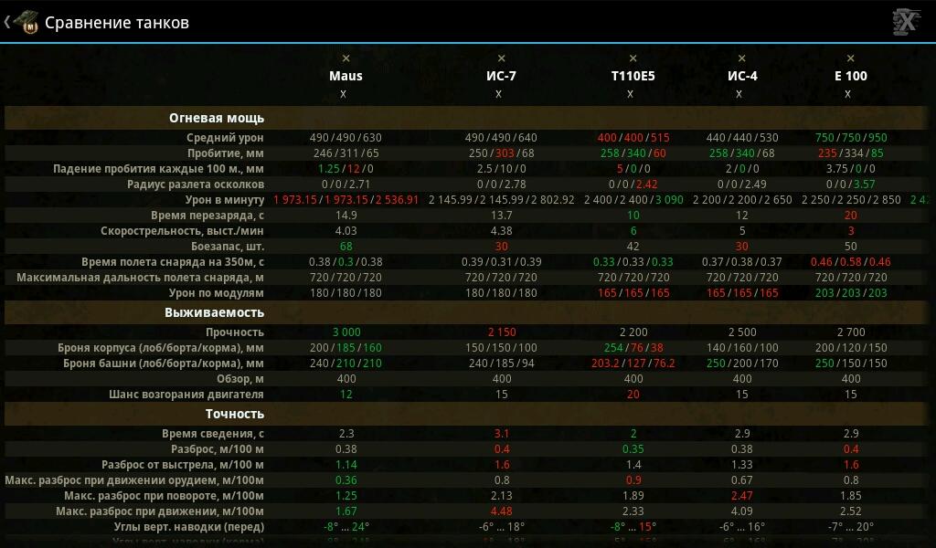 Также имеется возможность сравнивать два и более танка в любых комплектациях.